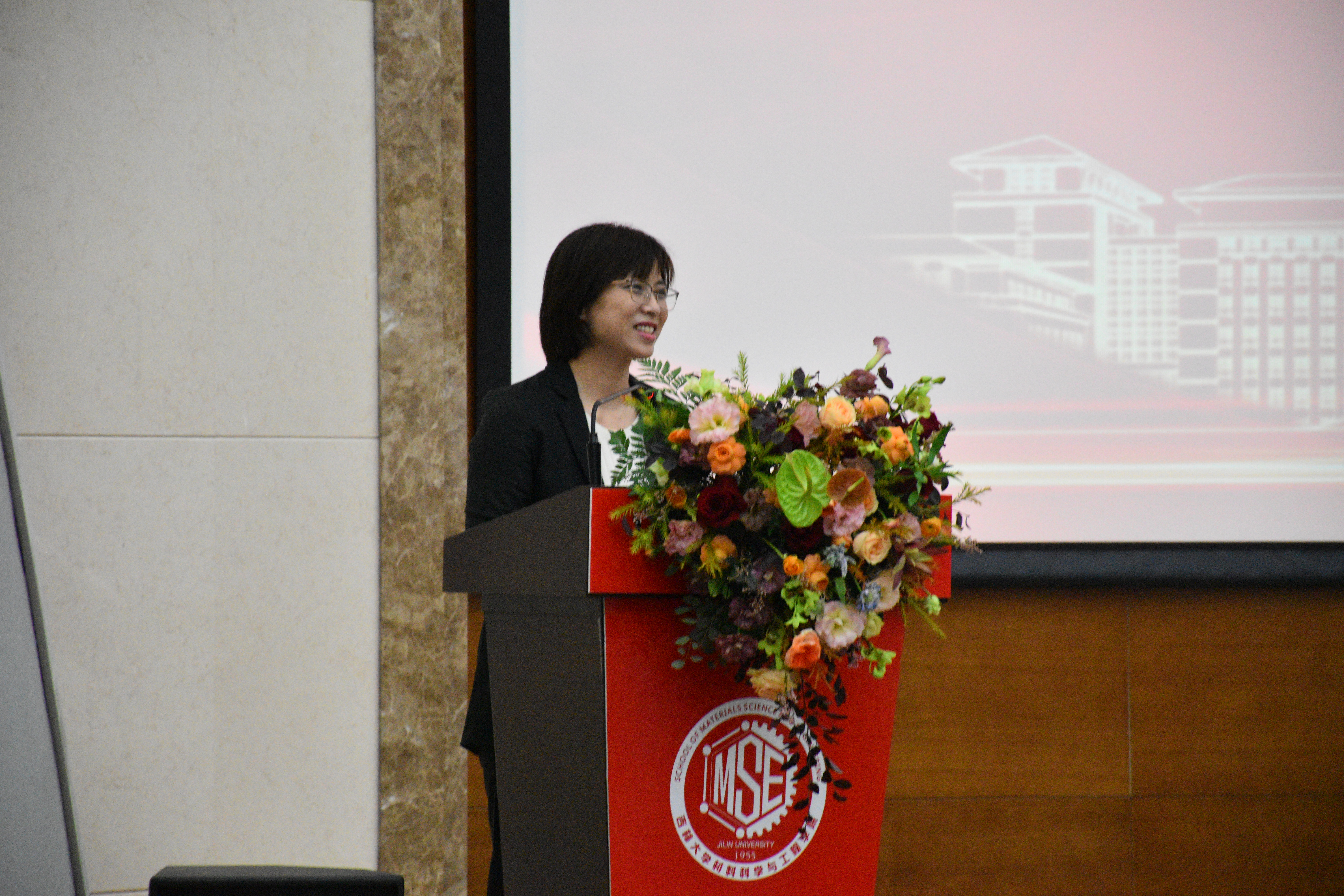 教师代表高分子材料与工程系张霏霏从“制定人生航向,明确人生愿景” “独立思考和创新能力”“勇敢面对挑战和失败”三个方面跟同学们分享作为老师对新同学的希冀盼望。
