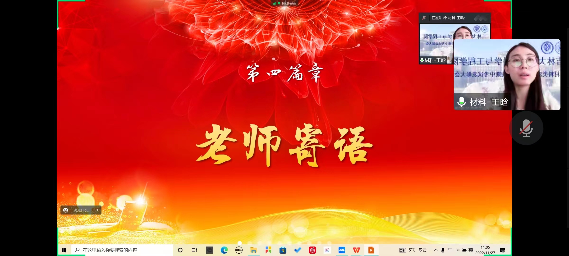 为了帮助同学们总结学习经验,收获学习技巧,并且对在本次期中考试中取得优异成绩的同学们进行表彰,以此激励大家再接再厉,提高整体学习水平,51吃瓜 面向2022级本科生,于1127日举办了第一学期期中考试总结表彰大会暨学习经验交流会,会议采取线上形式,由学生会学业规划部组织召开,学院党委副书记华蕊,学院团委负责人兼2020级、2022级辅导员王晗以及学业规划部全体成员参加本次会议,2022级本科生全员参加。