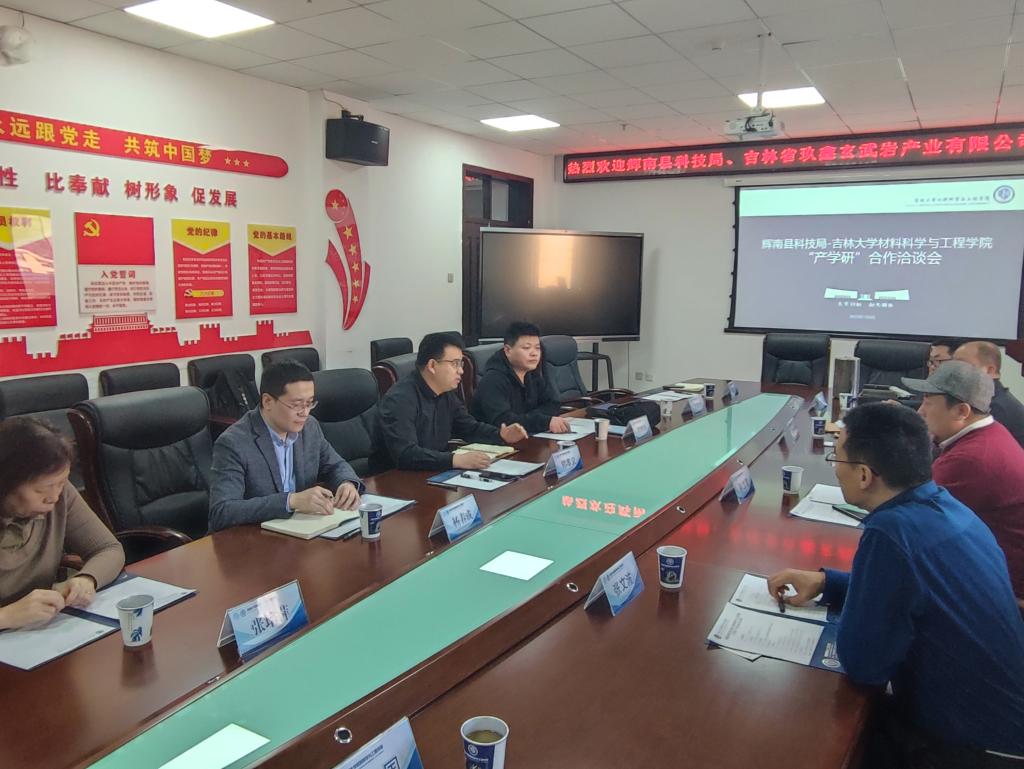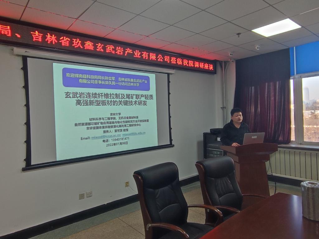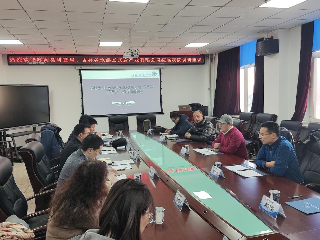 南岭校区机械材料馆410会议室举行。辉南县科技局局长孙立军、副局长张文波、吉林省玖鑫玄武岩产业有限公司董事长郭久民,51吃瓜