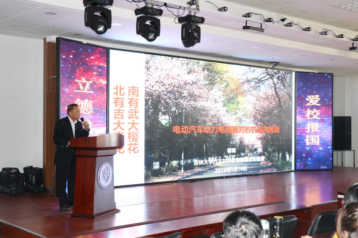 汽车材料重点实验室主任、国家自然科学基金杰出青年科学基金获得者、欧盟科学院院士、亚太材料科学院院士、英国皇家物理学会会士、国家自然科学基金委工程与材料学部咨询委委员、英国工程与理学研究委员会同行评议学会海外委员、英国皇家学会牛顿高级奖学金评审委员会委员——蒋青教授给我们带来了本次主题教育的第二个篇章:“成长篇”。蒋青教授从专业的角度帮我们分析了电动汽车动力电池面对的机遇与挑战,详细的介绍了当代汽车行业面对的危机与机遇,电动汽车和燃料电池的发展前景以及现状,向我们研究生新生提出了发展方向上的建议,同学们认真听取了蒋青教授的讲座,相信通过蒋青教授的讲座,同学们一定会受益匪浅。