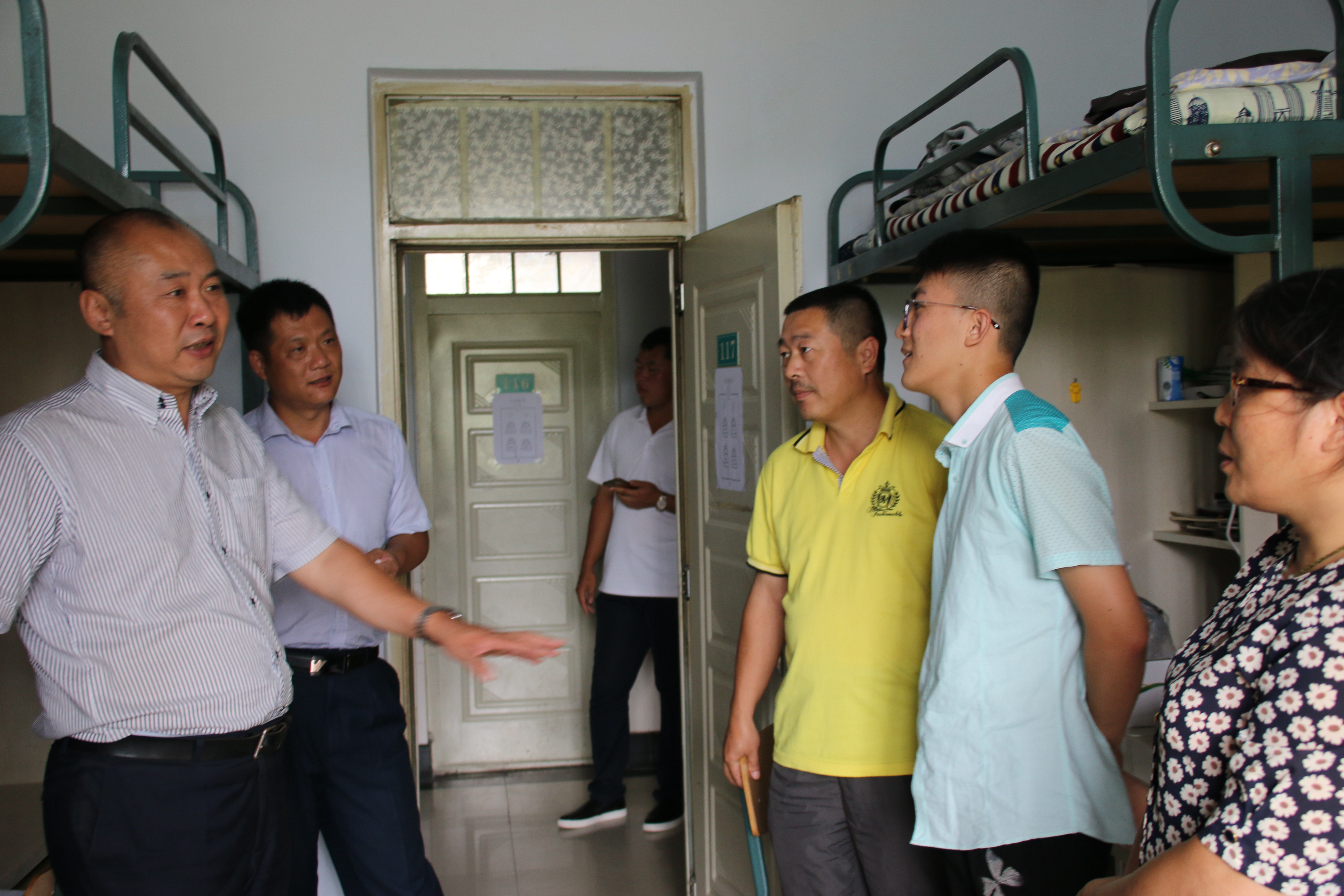 为更好地了解新生情况,增进学院和新生之间的交流,8月27日下午1点,材料科学与工程学院党委书记刘远,党委副书记兼副院长李东生,2017级辅导员杨超,2016级辅导员严冬以及辅导员助理走访了新生寝室,查看新生住宿及内务情况。