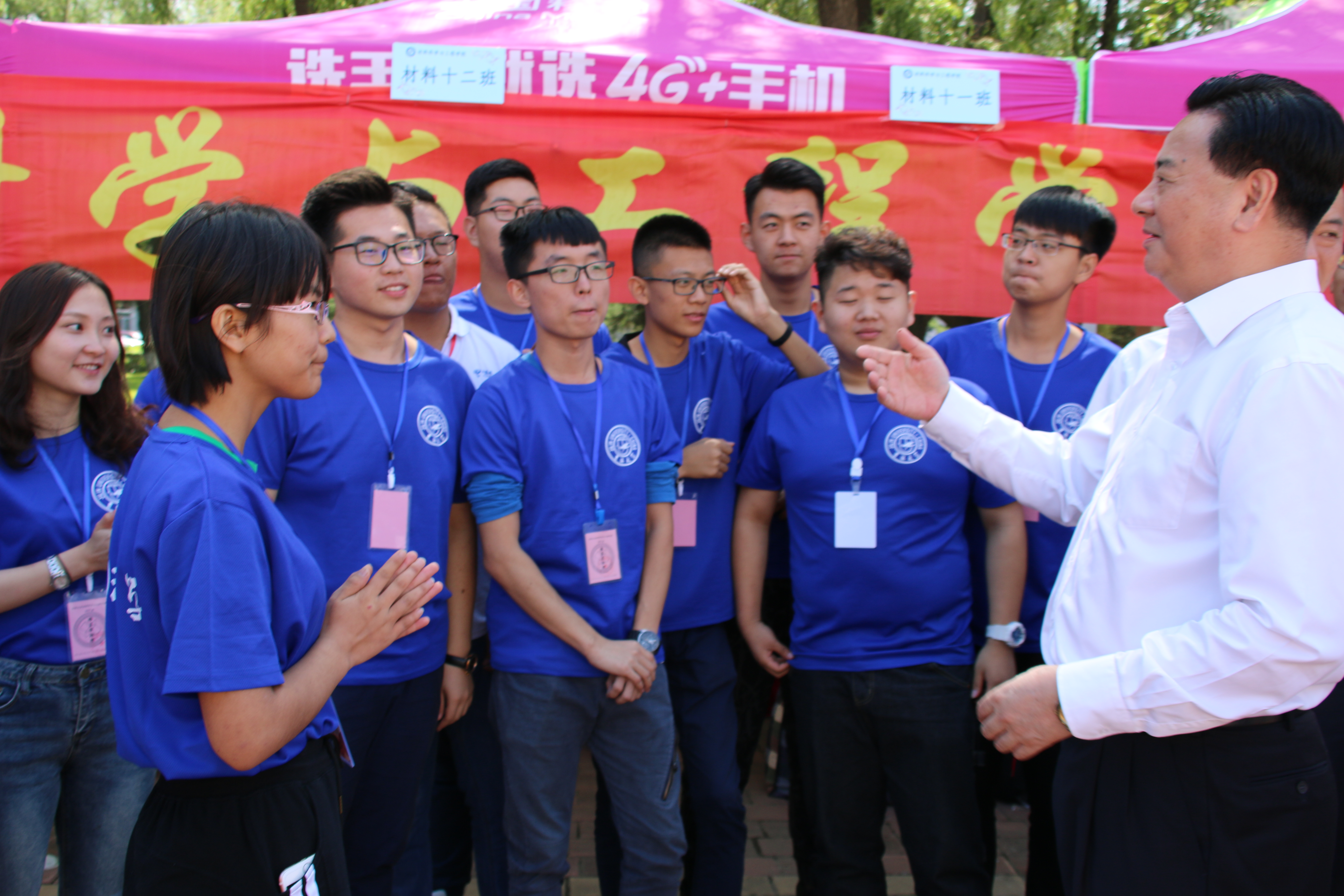 的第二天迎新,我校校长李元元莅临迎新现场,视察迎新工作,慰问迎新现场志愿者,并与现场新生亲切交谈,让材料学子感受到了吉大的温暖。