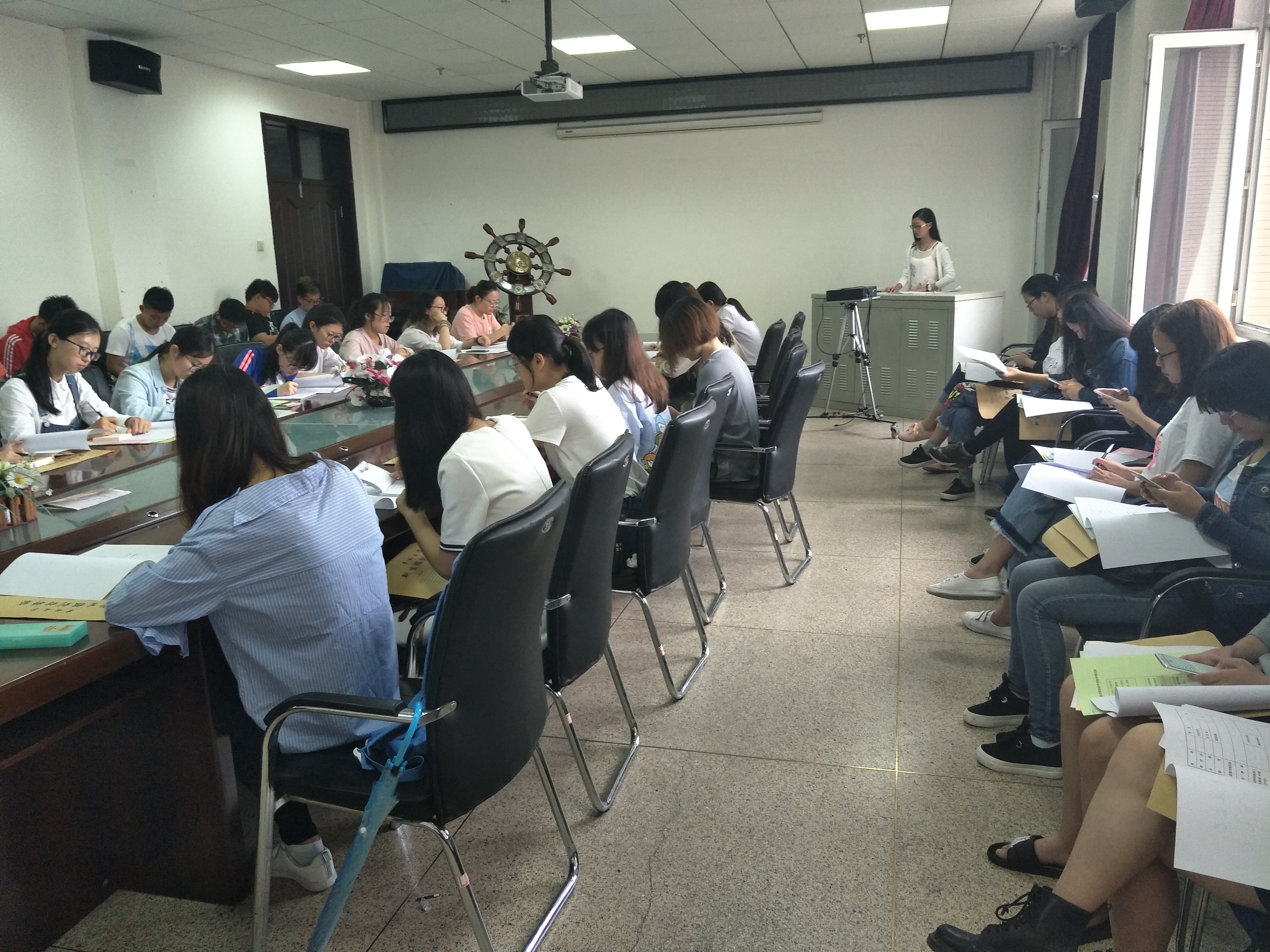 于迎新工作前夕,在逸夫机械材料馆4楼410会议室组织召开了前台迎新人员培训大会。
