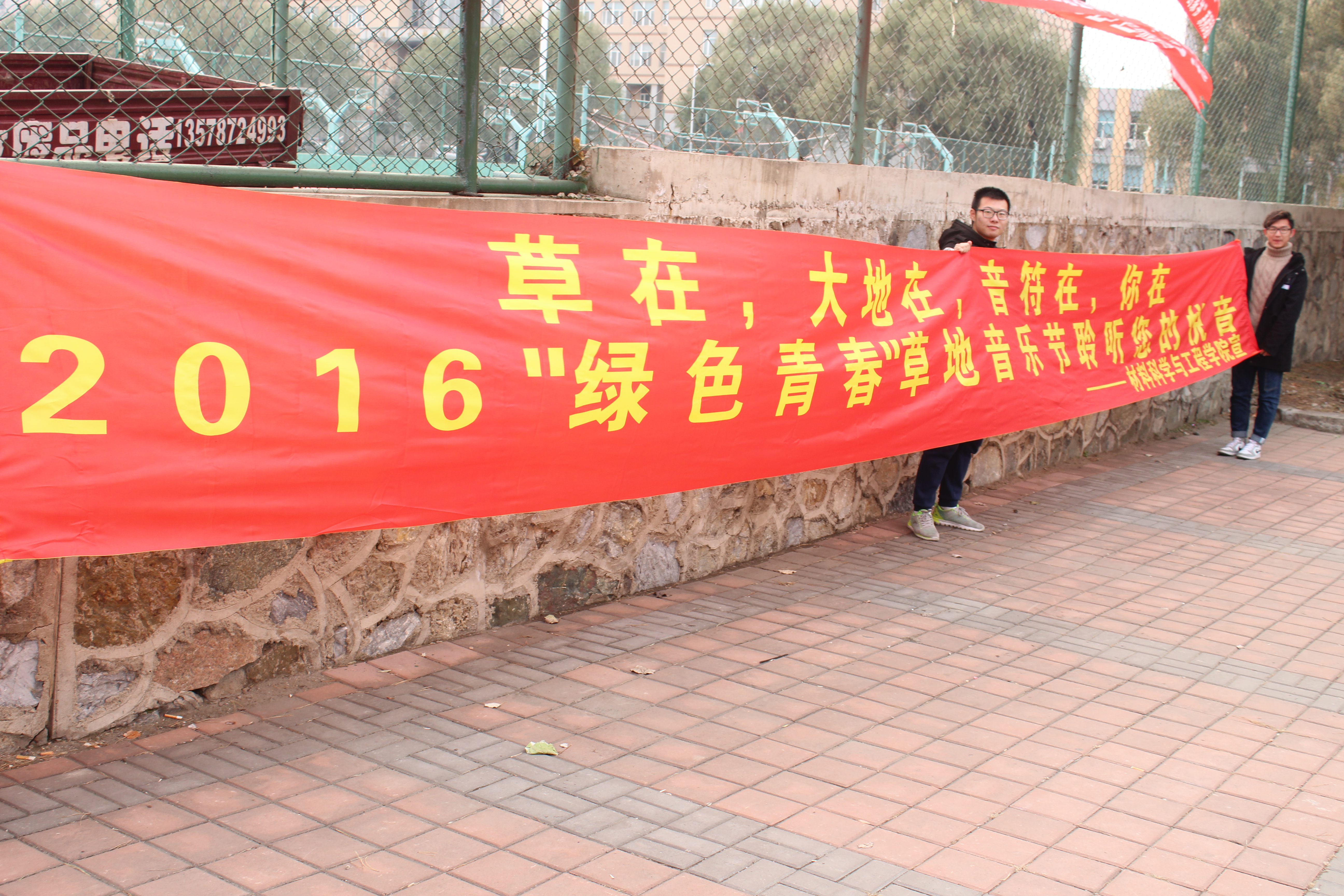 本次活动采取了线上线下同时进行的方法。线上采用微信公众平台定时推送相关信息的方式进行宣传。据公众号的后台数据显示,此举收效甚广,不仅材料学院学生对此次活动十分期待,其他学院及东北师范大学的学生也对此次“绿色青春”主题音乐晚会有较大期待。线下,学生会成员于第二餐厅前悬挂了音乐节宣传条幅,在第一、二、四、五餐厅门口张贴海报,对想了解的同学进行传单的分发。耐心地对同学们提出的疑问做出解答。9月下旬,学生会学生干部租用10辆自行车,组织了为期一天的自行车骑行宣传,骑手们集体按照队形绕行南岭校区两圈并用音响、海报对本次活动做出宣传。