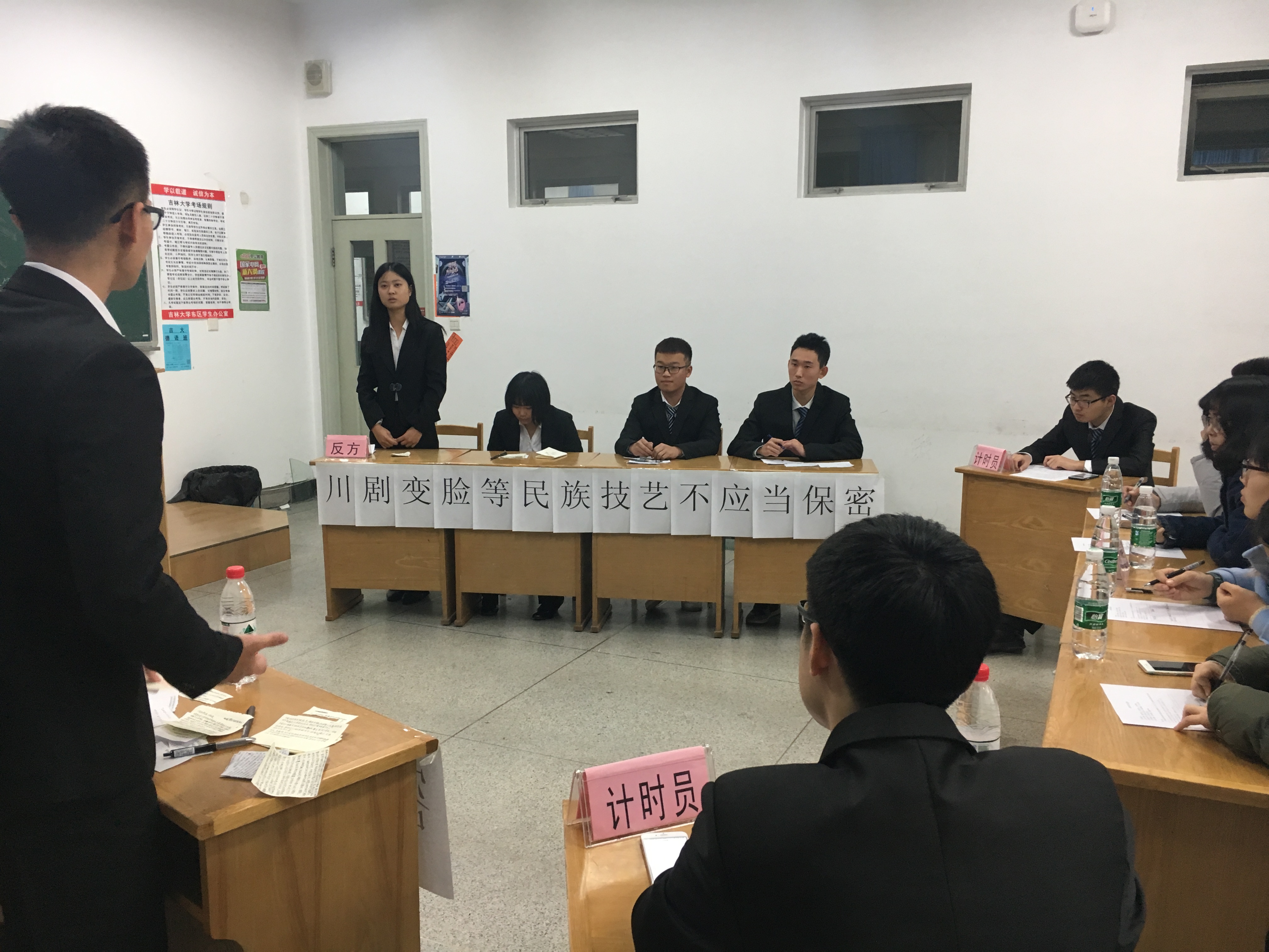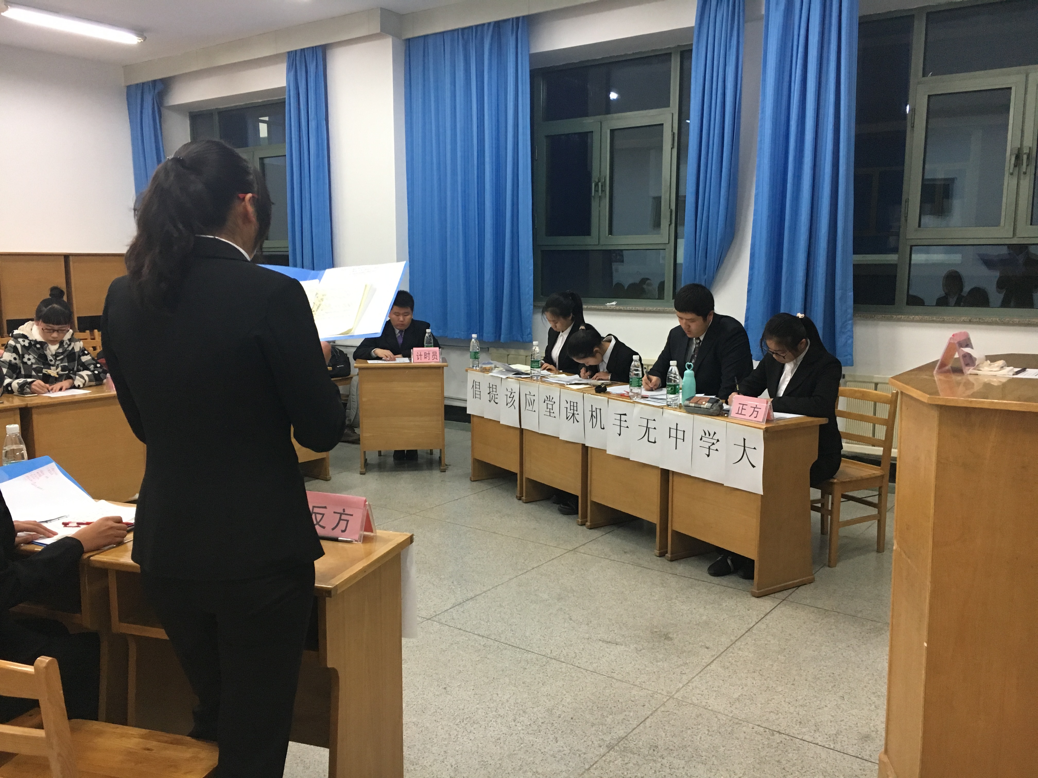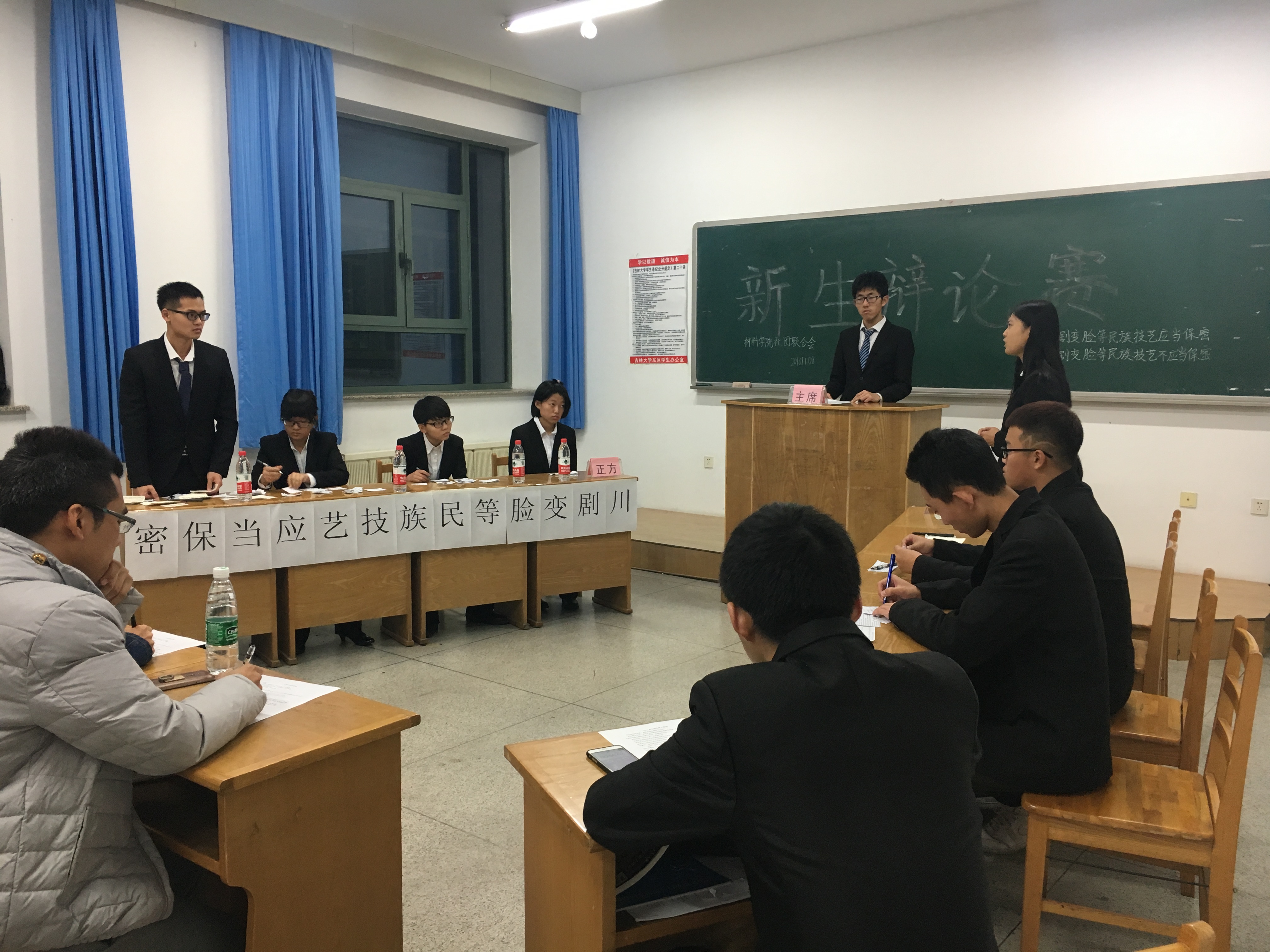 本次的两场辩论赛依旧是由2015级最佳辩手担任评委,材料学院社团联合会辩论队副部长担任主席和计时员,半决赛的第一场的辩题为“川剧变脸等民间技艺是否应当保密” ,由正方材料物理一队对战反方五班。第二场辩论赛中正方六班和反方材料物理二队激烈讨论“大学生无手机课堂是否应该提倡”这一辩题。两场辩论赛中双方针锋相对、互不相让,经过几个环节的激战,最终五班和材料物理二队取得半决赛胜利,顺利进入总决赛。至此,材料学院“新生杯”辩论赛半决赛圆满结束。