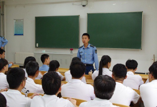 在教学模拟中心,同学们观看了军校老师模拟的战争演示,并在科学发展观层面接受了思想政治教育和国防教育。活动最后,我院代表向空军航空大学赠与题有“听党指挥展英姿,作风优良育人才”的锦旗。