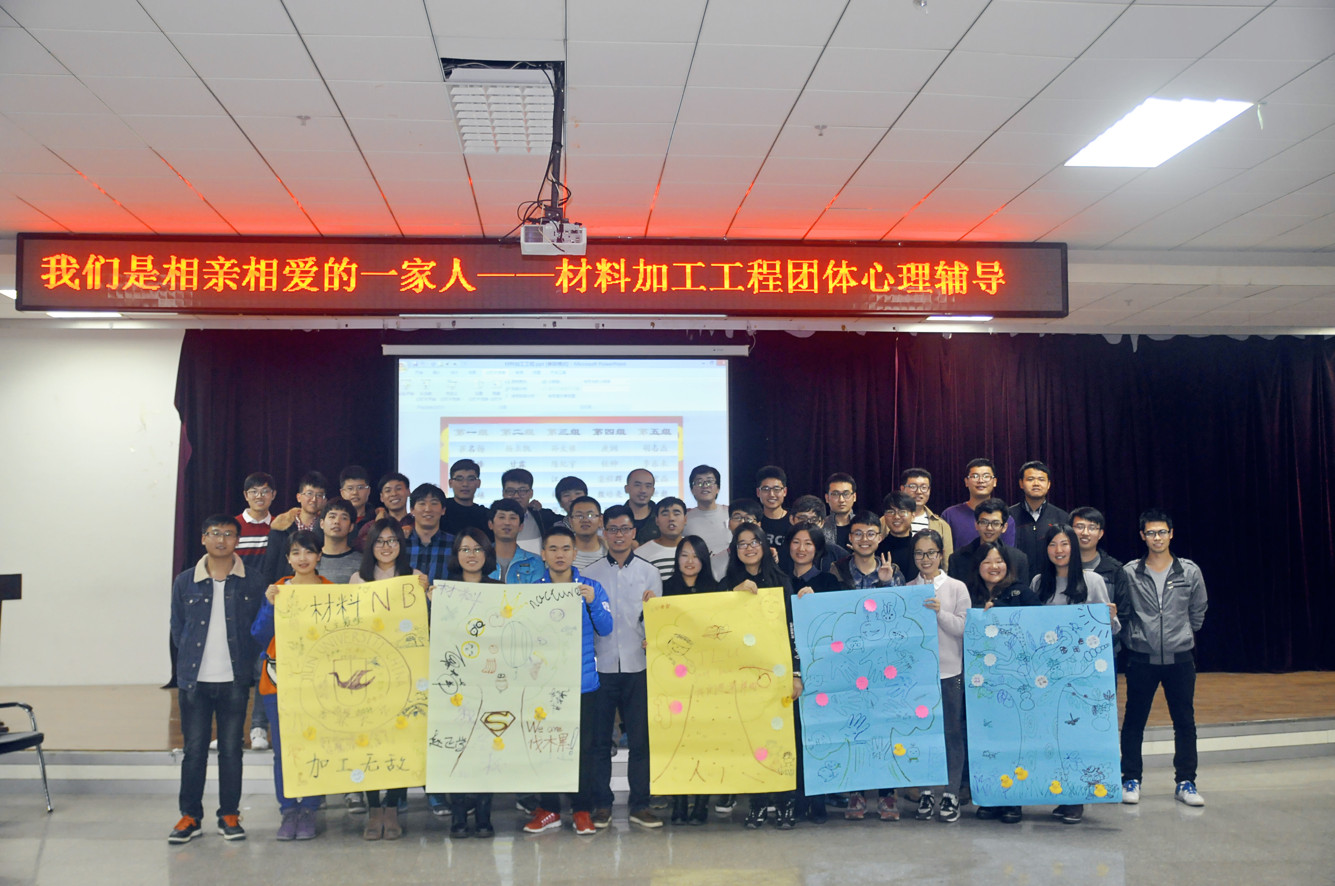 于2016年10月15日-23日在材料馆八楼报告厅和唐敖庆楼D429教室,以材料物理与化学、材料学、材料加工工程和材料工程四个专业为班级分别进行了主题为“我们是相亲相爱的一家人”研究生团体心理辅导活动,本次团体心理辅导由朋辈心理辅导员和研究生新生班长组织,2016级全体研究生新生参加。旨在引导2016级新生敞开心扉、肯定自我、超越自我、建立互信并增强团体凝聚力。