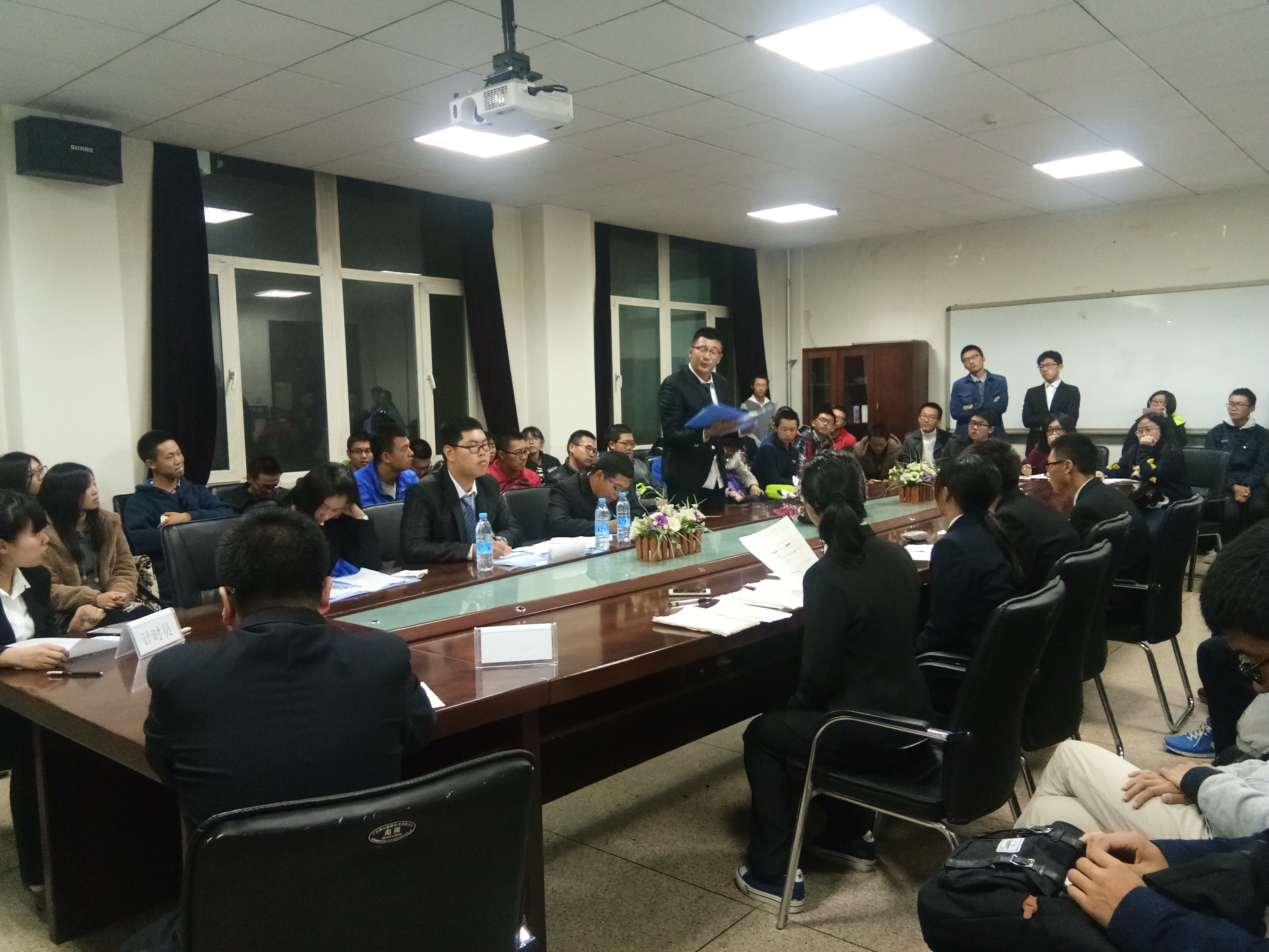“新生杯”辩论赛第一轮第二场于10月13日晚6点在逸夫机械材料馆410室正式打响。