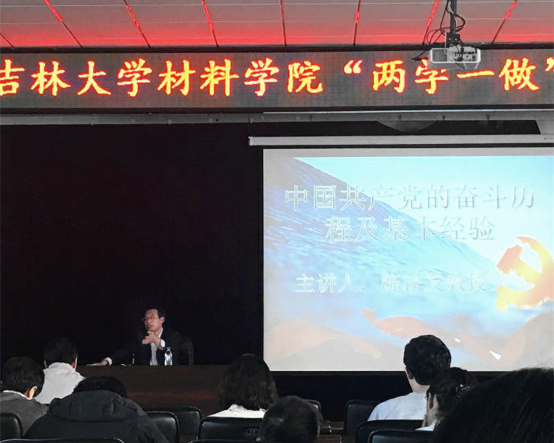 党委在材料馆楼会议厅召开了“两学一做”专题教育活动。学院领导班子成员及党委范围内的全体党员参加了此次活动。活动由党委书记周岩松主持,陈松友教授作《中国共产党的奋斗历程及基本经验》专题报告。
