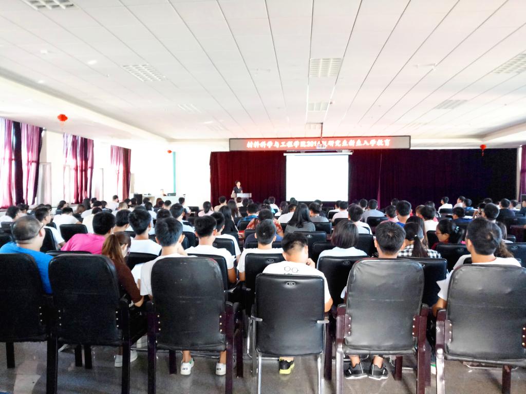 在逸夫机械材料馆八楼报告厅开展迎新入学教育系列专题讲座第三场,本场讲座由党委副书记兼纪委书记于雅琳老师主持,材料学院2016级全体博士、硕士研究生参加了本次会议。