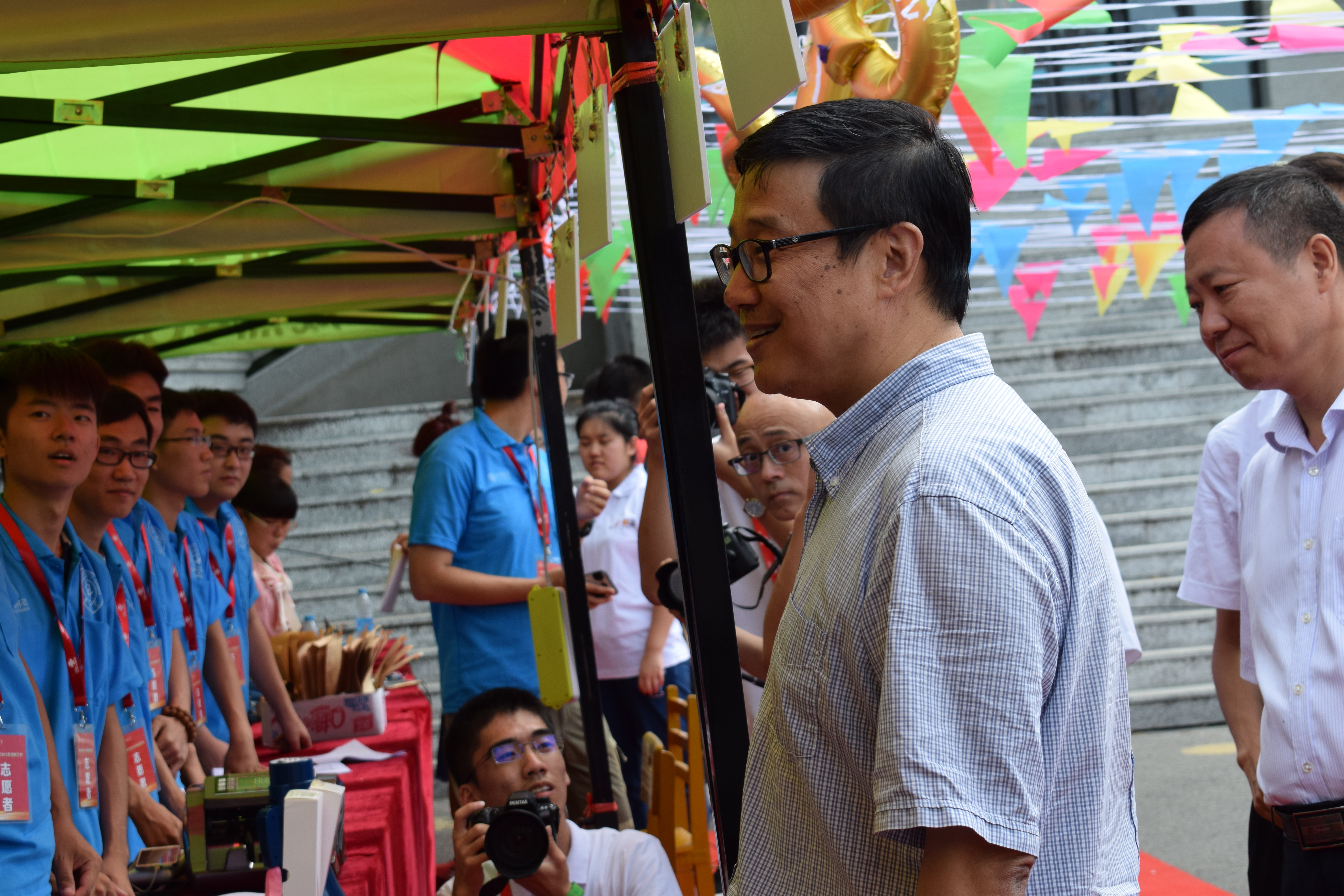 19日晨曦初照,学团委成员的身影出现在第二教学楼门前,他们有序地从第二教学楼搬运出桌椅,并在材料学院迎新现场摆放整齐,之后他们搭架帐篷,铺展台布,摆放迎新报道时所需要的各类资料文件。不久,身着统一服装的工作人员,进入了工作区,开始了迎新工作,在迎新工作中,前台女生认真娴熟地指导他们填写入学报到资料,为他们整理档案袋,老师们为新生和家长解答疑问,其他工作人员帮助新生搬行李、引路、发钥匙,介绍学校、宿舍及学校周边情况,并且在当天下午,学校领导视察了我院迎新工作的落实情况,并给予了肯定。