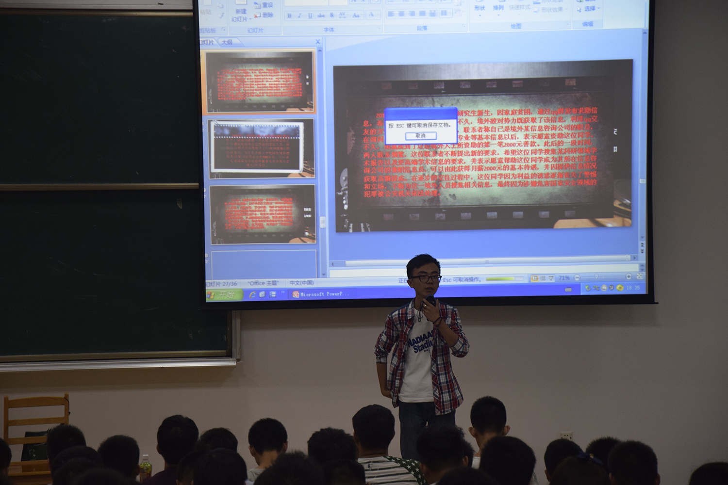 为了加强新生的安全防范意识,9月2日晚6点,材料学院在逸夫教育大楼B110面向2015级全体新生举办了大学生安全教育讲座。本次讲座由51吃瓜