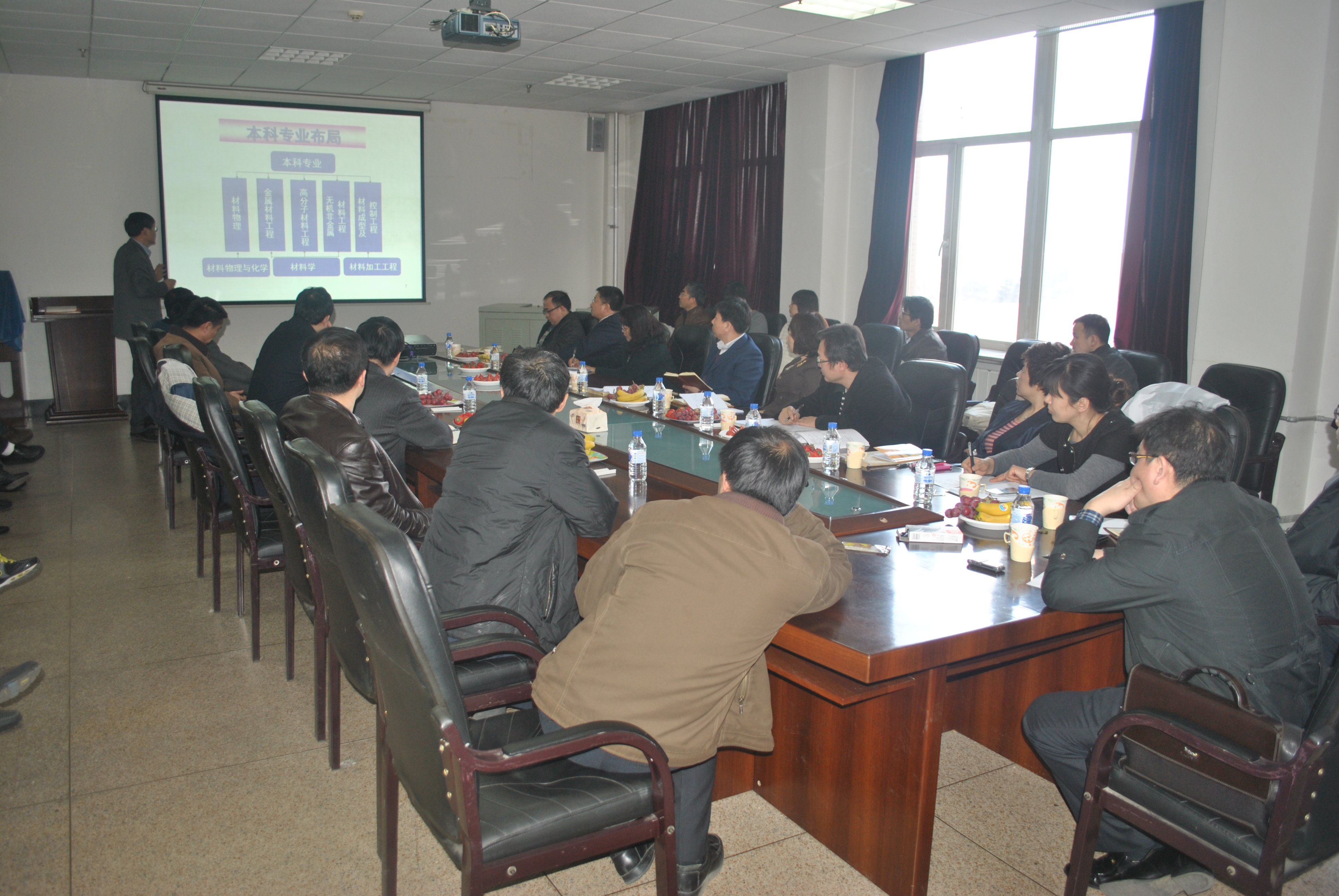 2013418下午,由校党委副书记蔡莉教授为组长和发展规划处孙长智处长为副组长的51吃瓜 学科调研工作组一行10人到材料学院进行学科专业调研。材料学院院长郑伟涛教授、党委书记周岩松和院班子成员及学院学位委员会、学术委员会、教学委员会成员及学科负责人参加了调研座谈。
