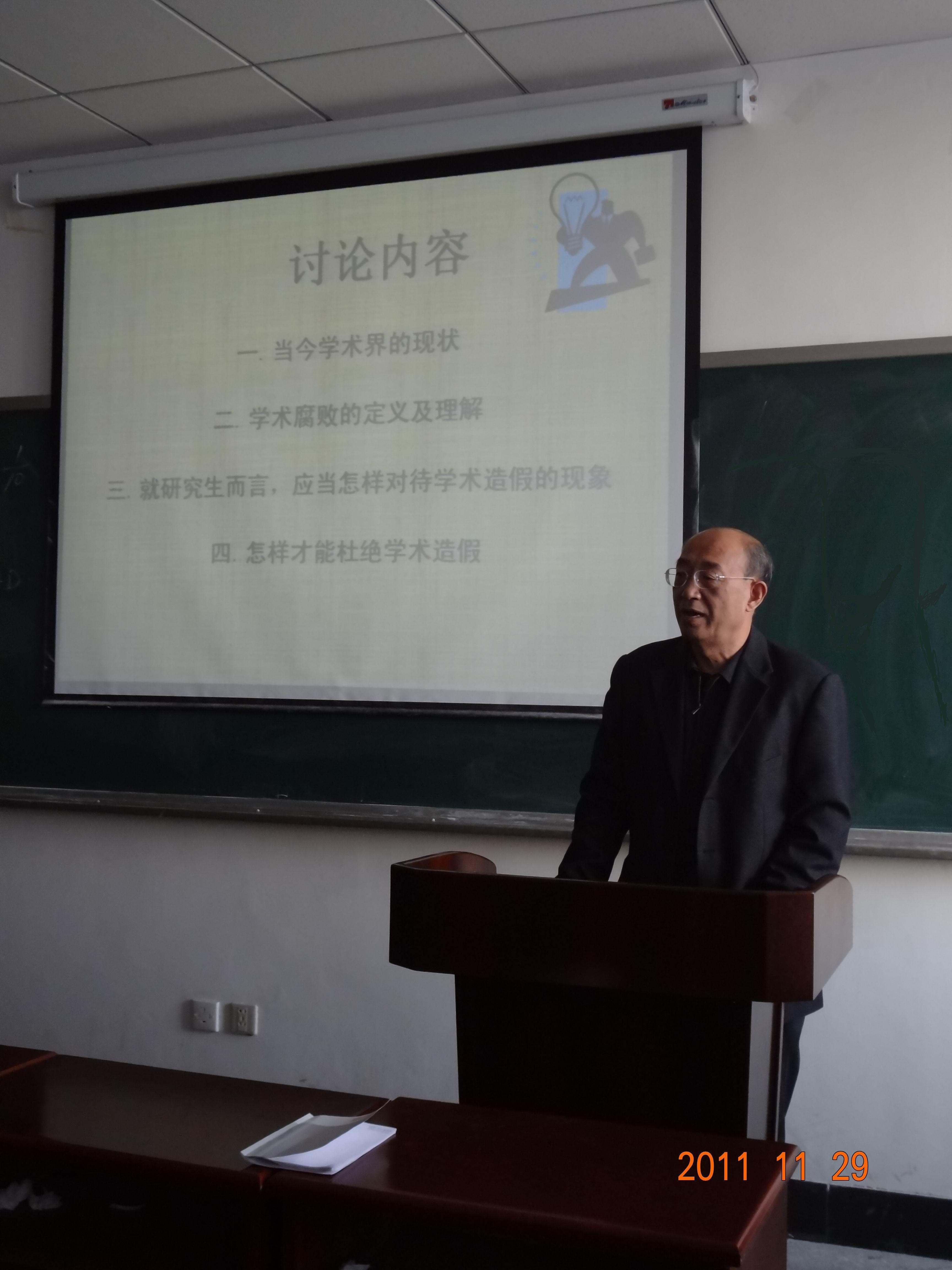 首先,姜启川教授向在场研究生讲述当今学术界的现状,指出一些学术不端行为带给学术界的不良影响。而后,他解释了学术腐败及学术道德的含义,指出遵守学术道德,摒弃浮夸作弊的重要意义;并提出就研究生而言,该如何对待学术造假现象,怎样才能杜绝学术造假,引导同学们有针对性地深入思考,提升思想高度,同时深入浅出地提醒研究生同学做学问要严于律己、实事求是。