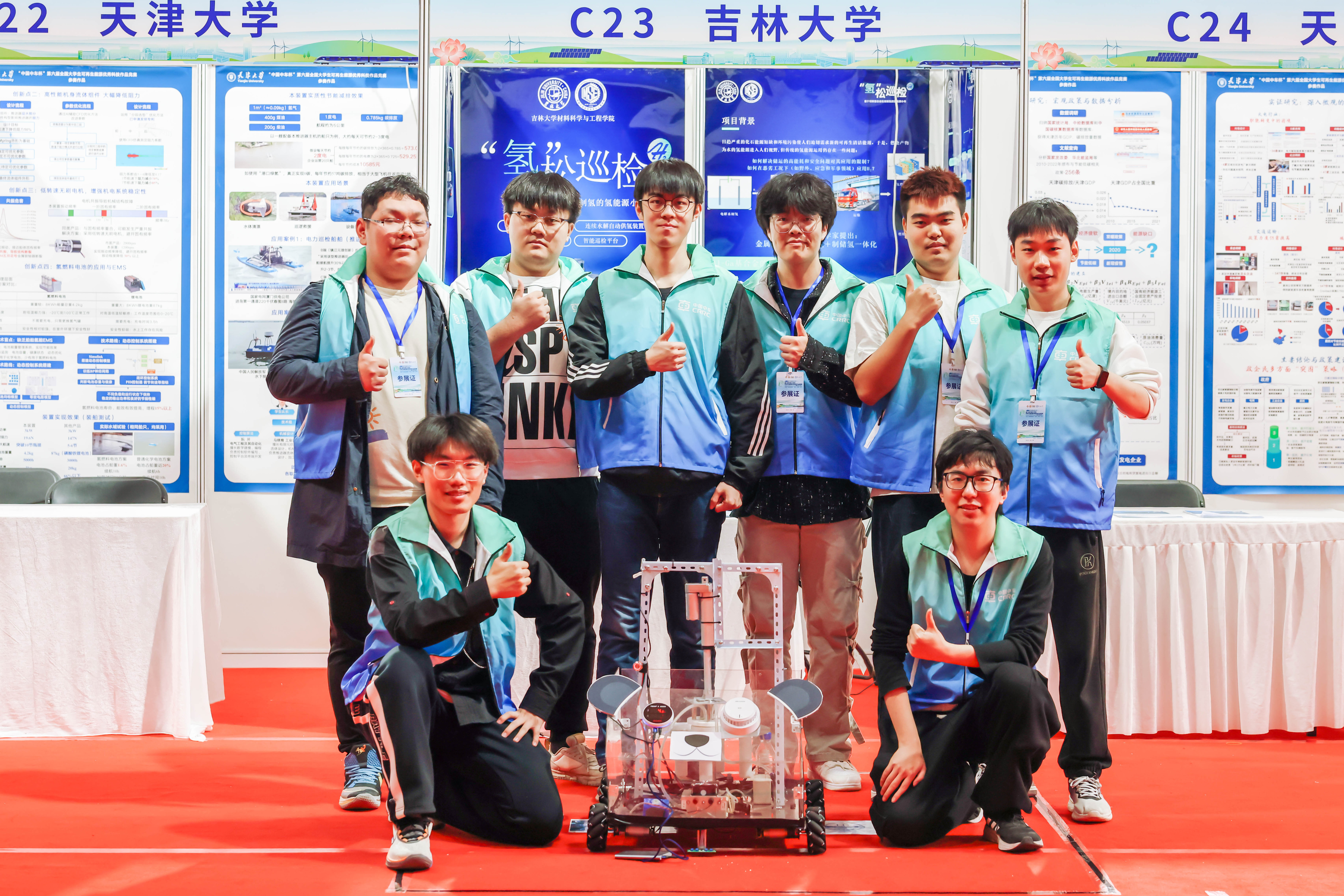 由学院高钱教授指导的本科生项目团队汇聚了8名来自不同学院的本科生组成(张胜、李一凡、邓光、张子牛、朱子浩、贺甲博、董一言、于清霖)。项目旨在运用 Al-Ga 基合金水解制氢材料,通过将铝基在线制氢系统和燃料电池联机,设计一款针对于该材料的小型氢能源动力系统,并尝试将该动力系统应用于智能巡检小车中。该小车内置模块化设计,其中的动力模块为本项目重要创新点,采用了铝镓基合金制储氢一体化技术,并自主设计了配套的可自动连续水解的在线供氢系统,该系统可以通过控制铝镓合金与水的进料量,实现对反应速率的调控,以满足燃料电池的需求,实现电能的平稳输出。通过铝基材料与水反应制氢,有效解决了移动平台氢气储存困难,小型储氢设备容量小,危险性大的难题。相较于传统锂电池,该动力模块具有无需充电,清洁无污染等优点,拓宽了氢能源的应用范围。另外,该小车还可加挂多种功能模块,可以用于外卖送餐,巡逻检查,野外救援等场景,具有广阔的应用前景。
