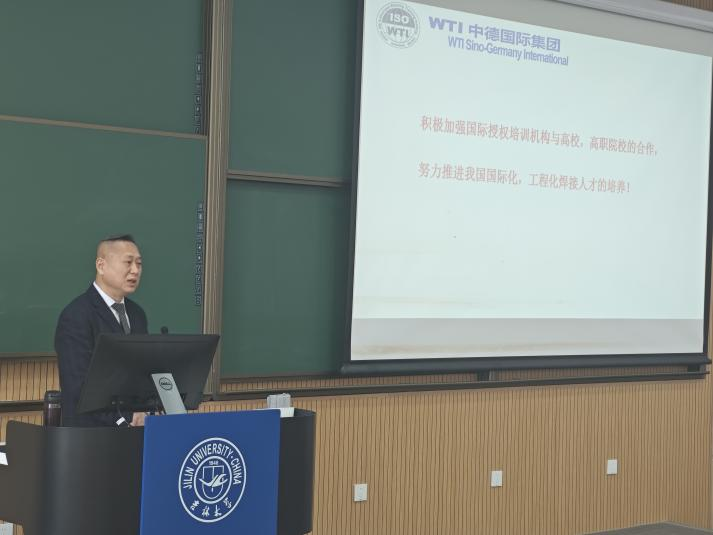 材料学院教授、现中车长春轨道客车股份有限公司副总工程师、中国中车科学家、国务院特殊津贴获得者王春生教授进行现身说法,他凭借自身丰富的经验和深厚的专业知识,为在校生们深入剖析了国际焊接工程师(IWE)证书对其日后工作的重要性。