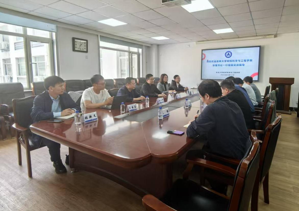 党委书记于海钢代表学院热烈欢迎我校调研团队的来访,并回顾了东大材料学院与吉大材料学院源远流长与亲密的合作关系。孙恒书记对东大材料学院的热情接待表示衷心的感谢!