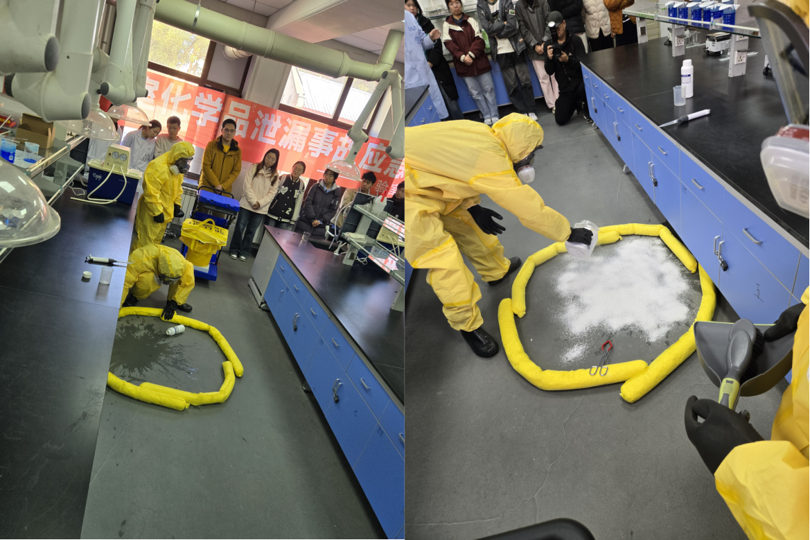 联合学校实验室管理处等部门,在南岭校区一校区149实验室开展实验室化学品泄漏事故应急演练,学院部分实验教学教师、科研团队及学生代表共同参与,以“实战化”模拟强化安全技能。