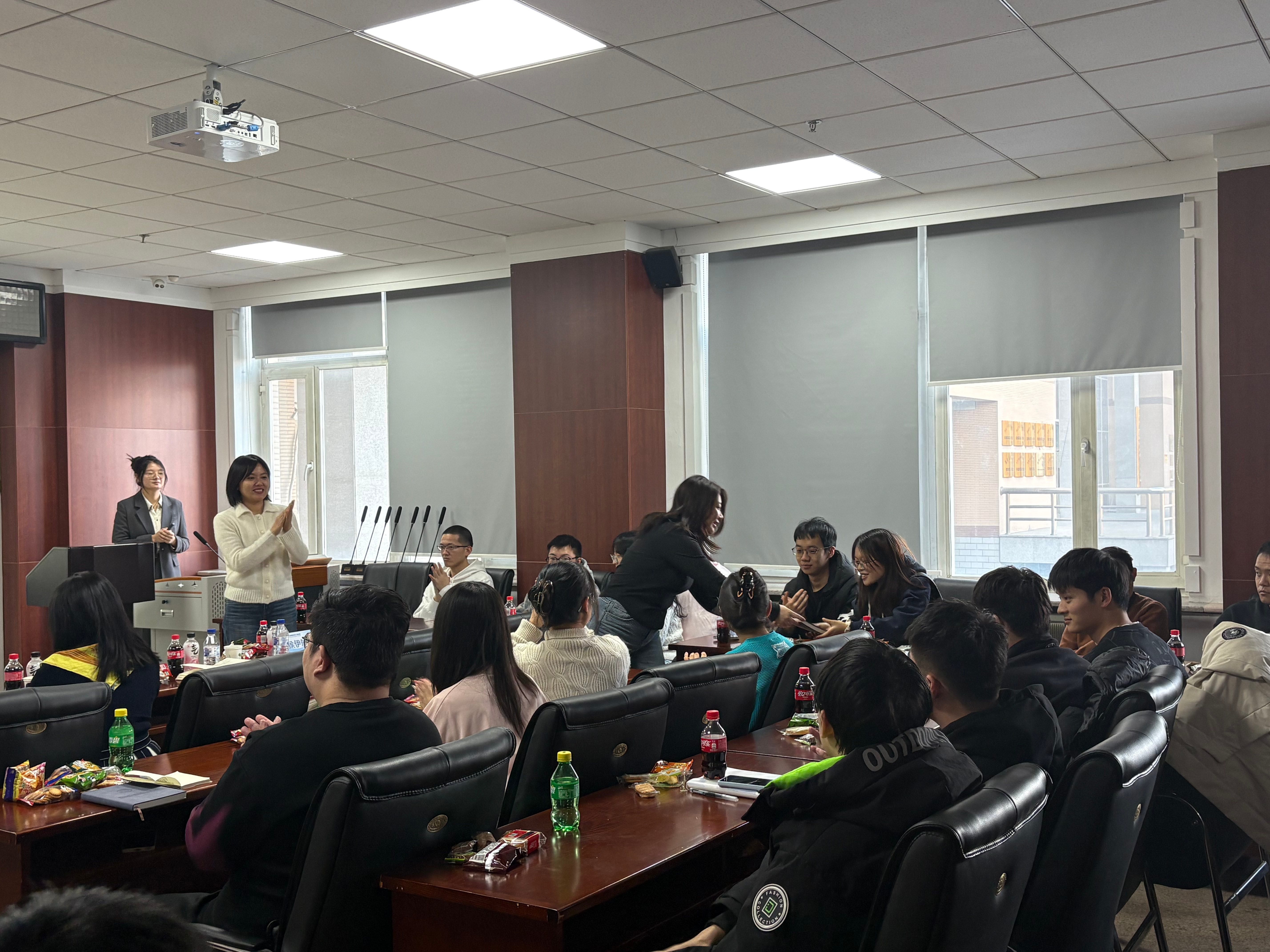 董墨老师(国际交流科科长)主要负责落地创新型人才国际合作培养项目,组织博士生国际学术论坛、研究生学科交叉融合系列活动。在本次学术沙龙的交流中,董墨老师主要围绕国家公派留学的相关内容和在场研究生沟通,为大家解答了公派留学的申报条件、材料准备细节、申请流程这些实际问题,也顺带介绍了可以衔接的相关交流项目与活动的参与方式,既给同学们理清了申请公派留学的实用指引,也让大家更清楚学校的国际交流支持资源,能帮着同学们更好地规划学业,抓住拓展学术视野的机会。