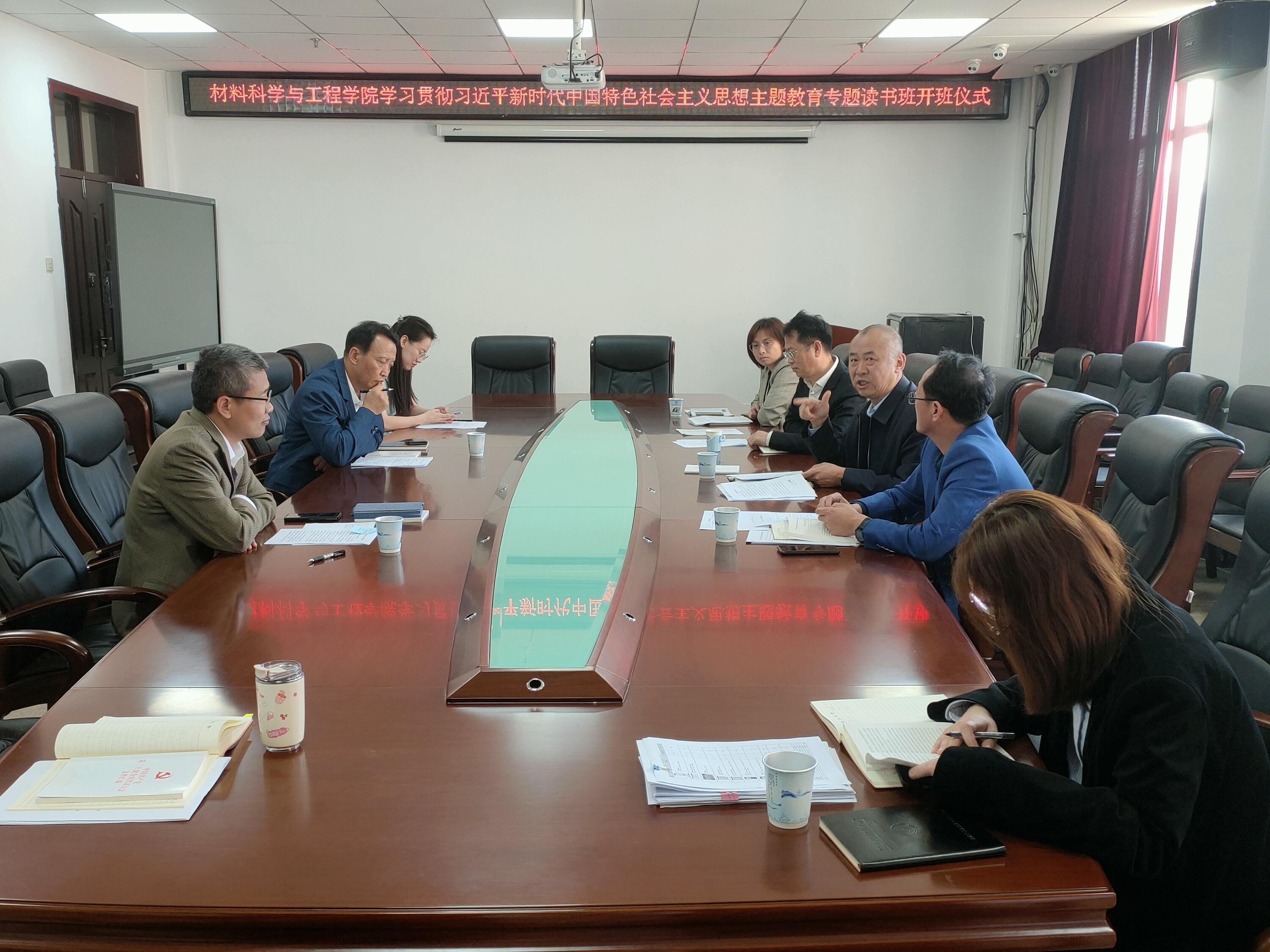 在材料馆410会议室举行学习贯彻习近平新时代中国特色社会主义思想主题教育专题读书班开班仪式。学院领导班子成员参加会议,会议由党委书记刘远主持。