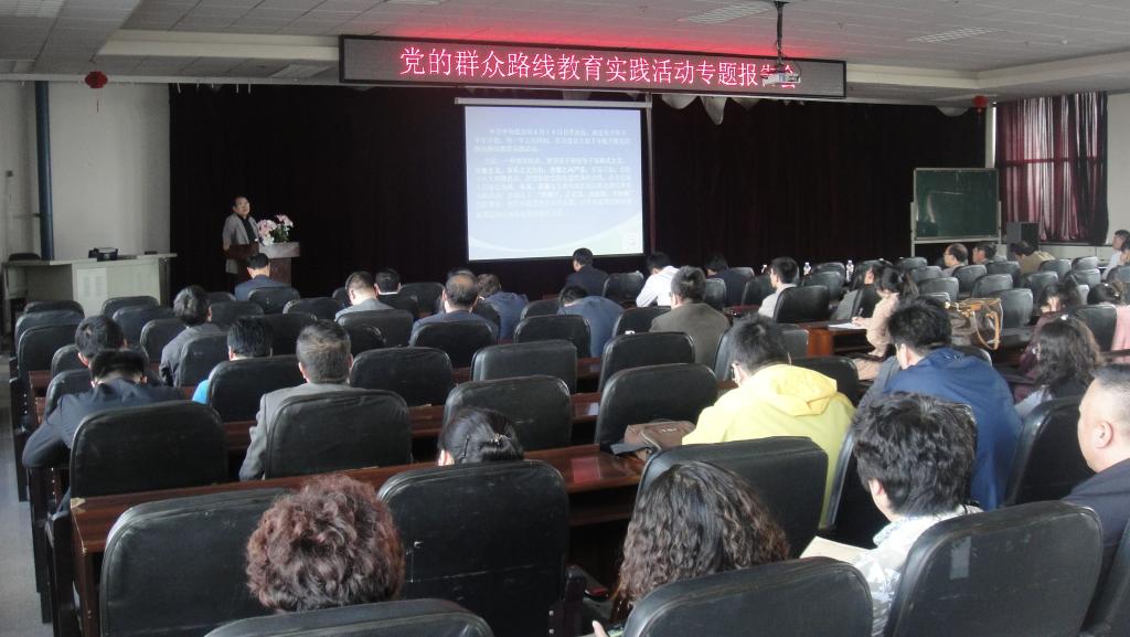 马克思主义学院院长韩喜平教授应邀做了题为《党的群众路线教育实践活动的必要性与路径》主题报告,三个学院的党政班子成员、系主任、党支部书记以及学生党员代表参加了学习。