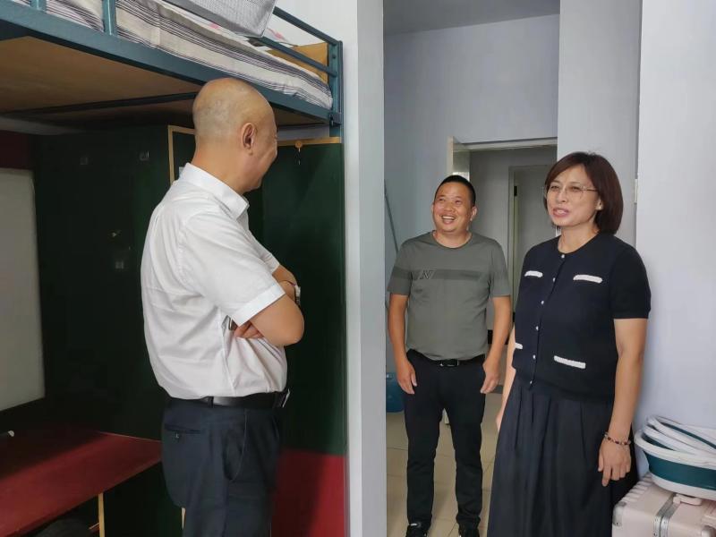 为更好的了解我院2023级本科生新生住宿情况和在校生活适应情况,引领新生尽快适应新生活、新环境,学院党委书记刘远老师、学院党委副书记兼副院长华蕊老师、本科生辅导员严冬老师、王晗老师于8月27日中午走访了南岭校区2023级本科生新生寝室,与刚刚入校报到的2023级本科生新生进行交流沟通。
