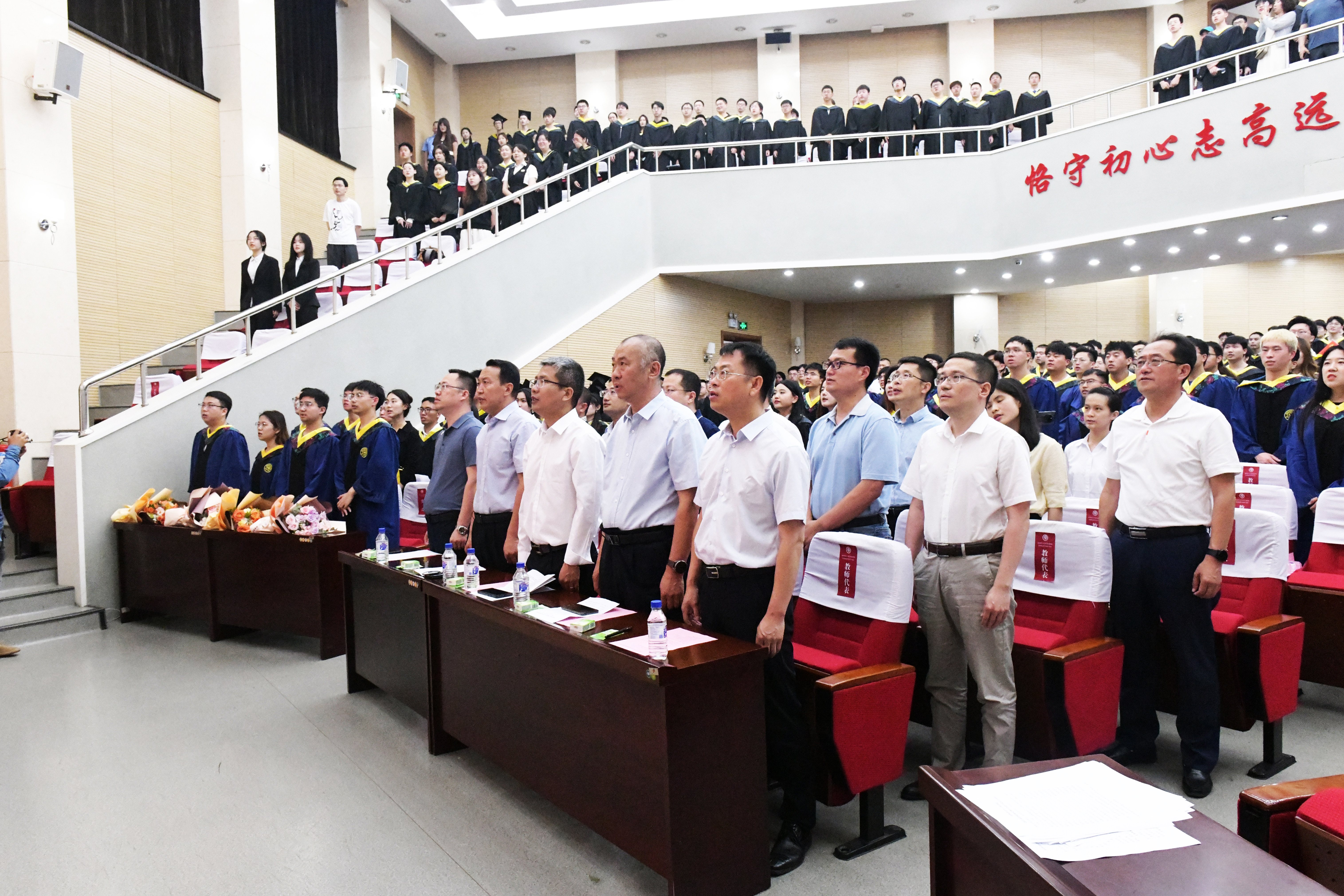 毕业典礼在庄严的国歌声中拉开帷幕。首先,学院党委书记刘远老师致辞,表达了对毕业生们的祝贺,嘱咐毕业生们要善于思考、终身学习,要脚踏实地、勇于实践,要志存高远、胸怀天下,并表示毕业生们永远是学校、学院的骄傲。