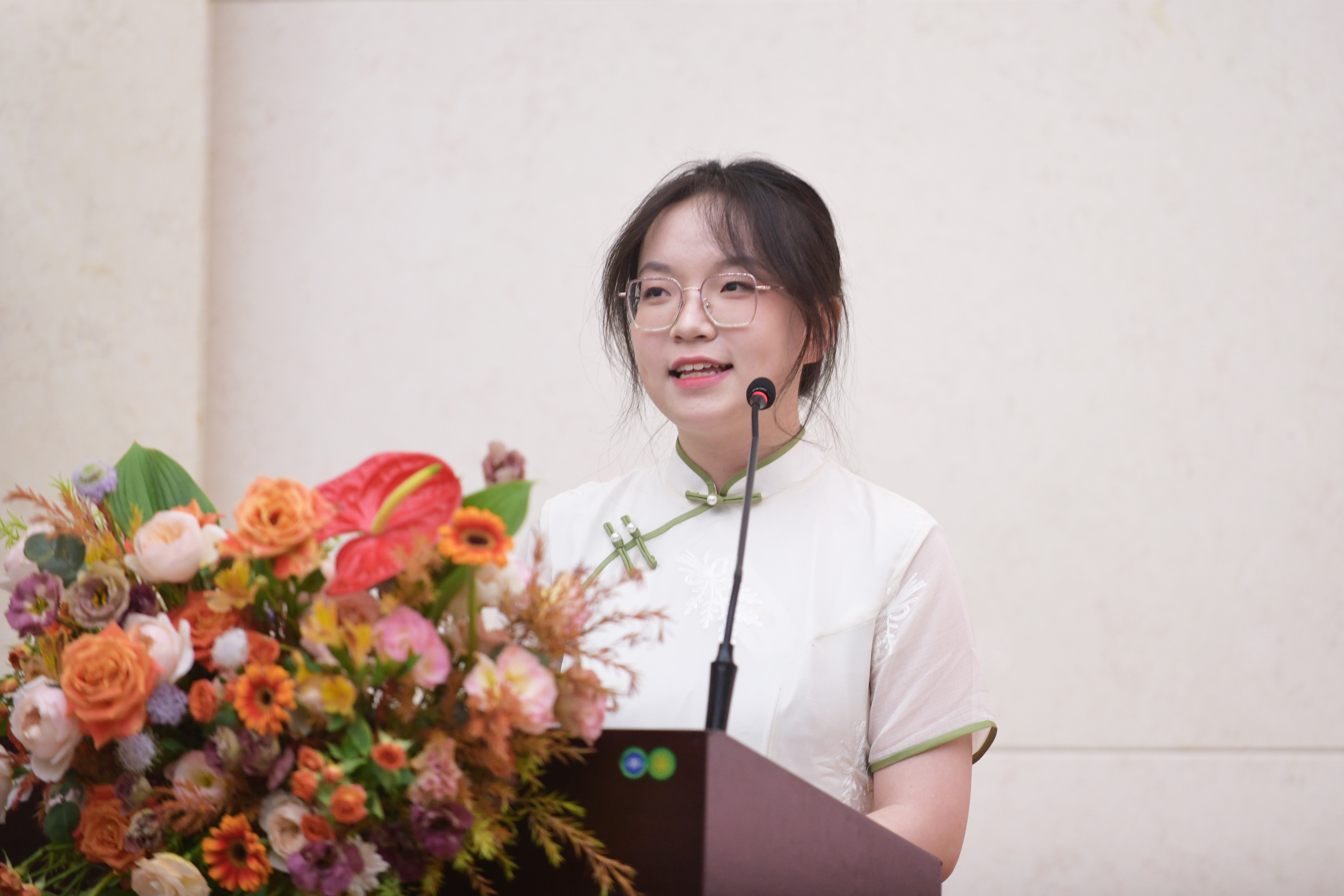 在校学生代表2020级本科生王亚婕同学表达了对学长学姐的祝贺和祝福,各位在校生将以学长学姐为榜样,继续走好未来的每一步,努力成为学校和学院的骄傲。