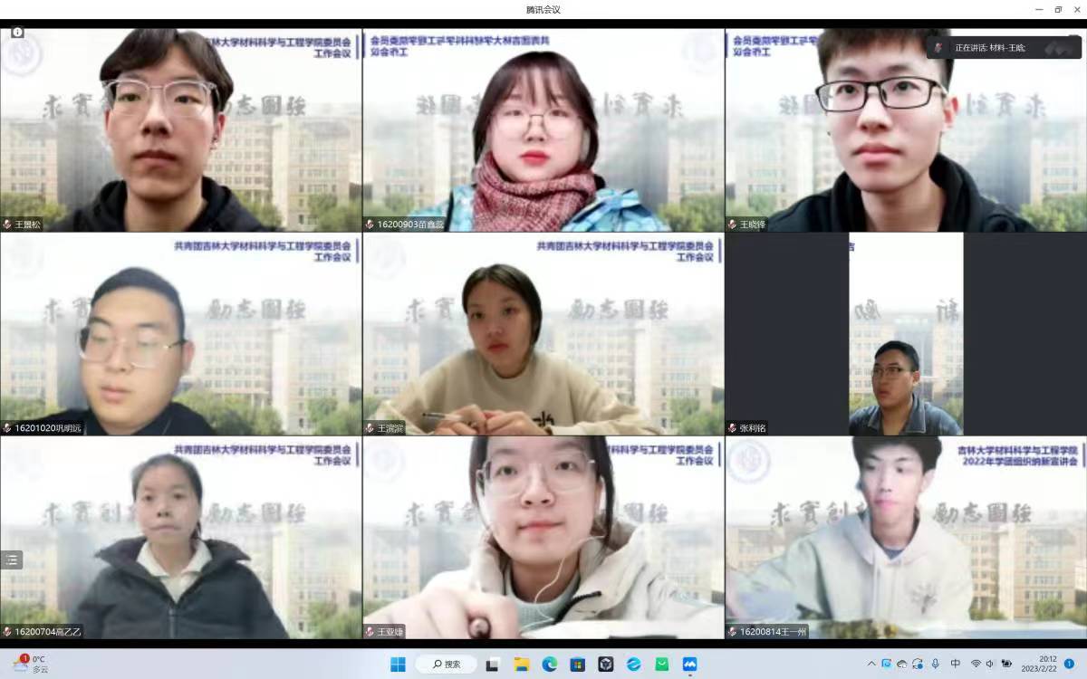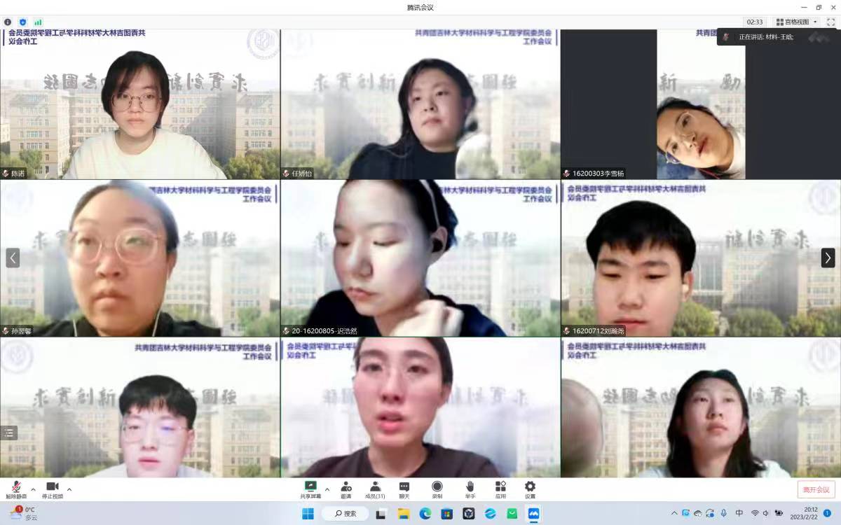 于2月22日线上召开本年度第一次学团工作会议,就2022-2023学年下学期学生活动的安排进行讨论。会议由团委负责人王晗老师主持,学院各学团组织负责人参加本次会议。