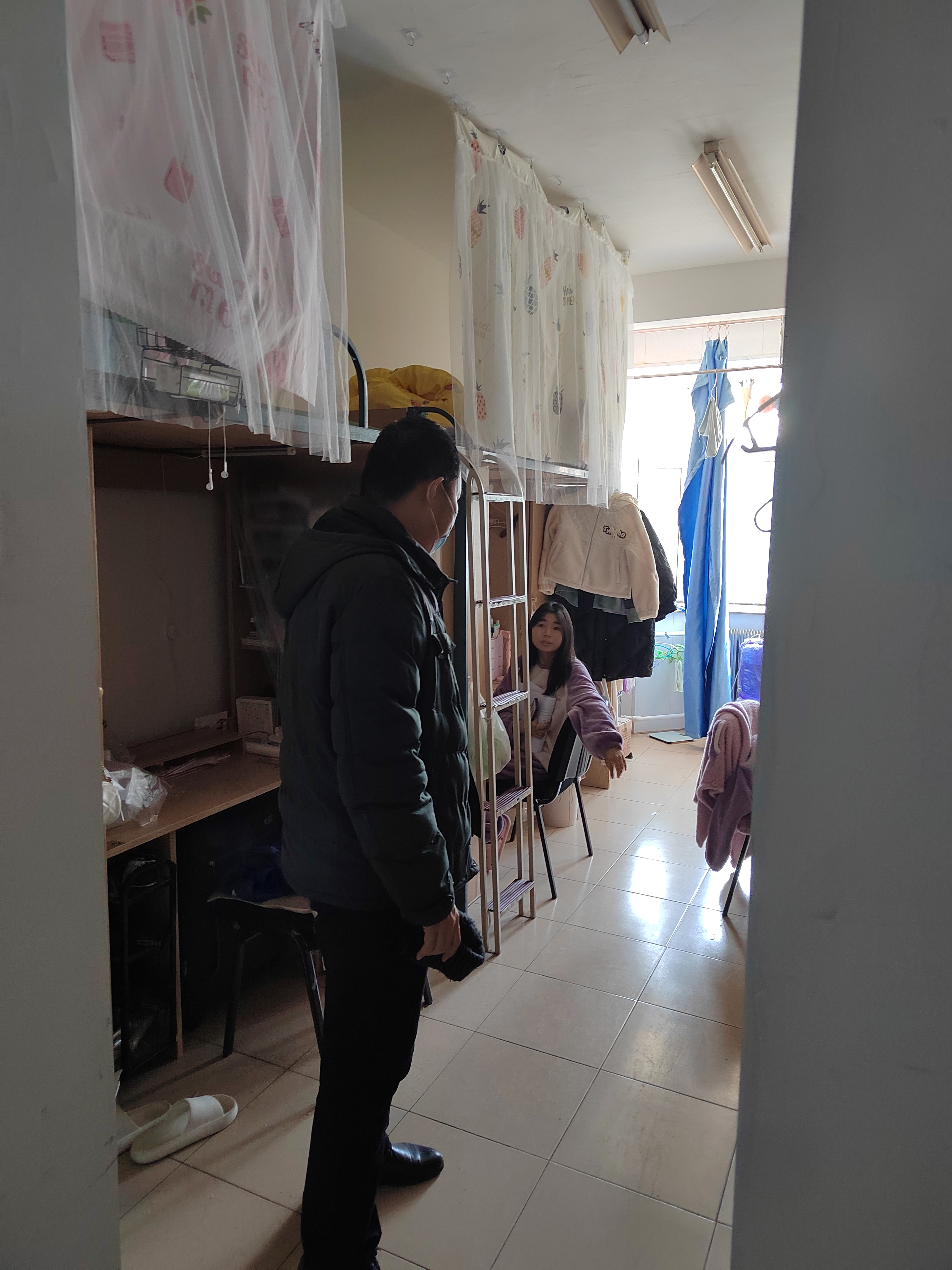 2021级本科生辅导员严冬老师于2月16日下午、2月17日上午分别走访了南岭校区十一公寓、十二公寓A区的2021级本科生寝室,与同学们展开友好交流。