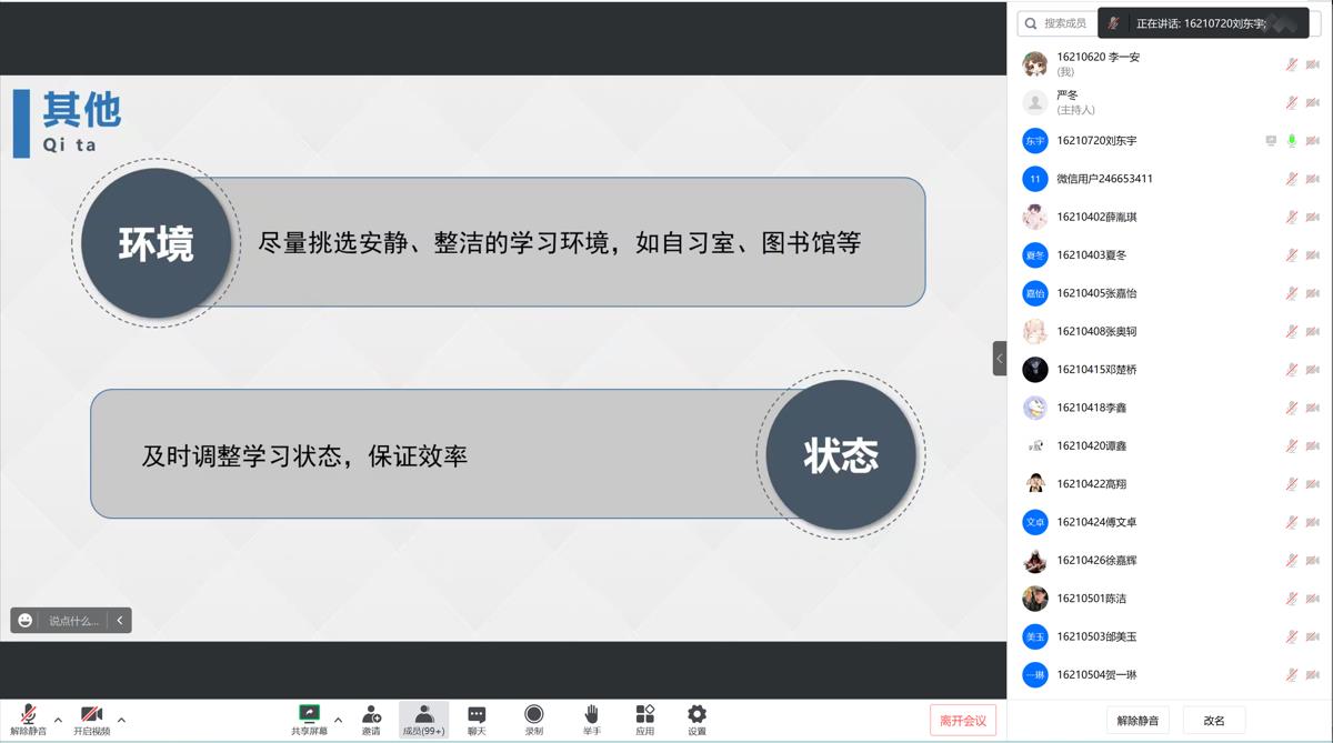 2021级本科生辅导员严冬老师通过腾讯会议的方式召开线上会议,材料类2021级班委会成员、寝室长以及全体同学和部分学生家长参加了本次会议。