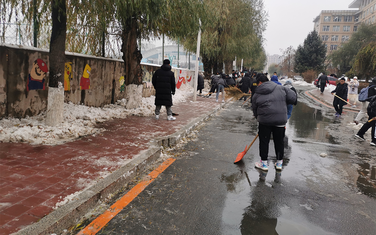 “吉大学子传真情,扫雪除冰暖寒冬”此次扫雪除冰工作,不仅使道路变得干净整洁、校内师生的出行更加安全便利,更是对学生开展劳动教育的有效途径。