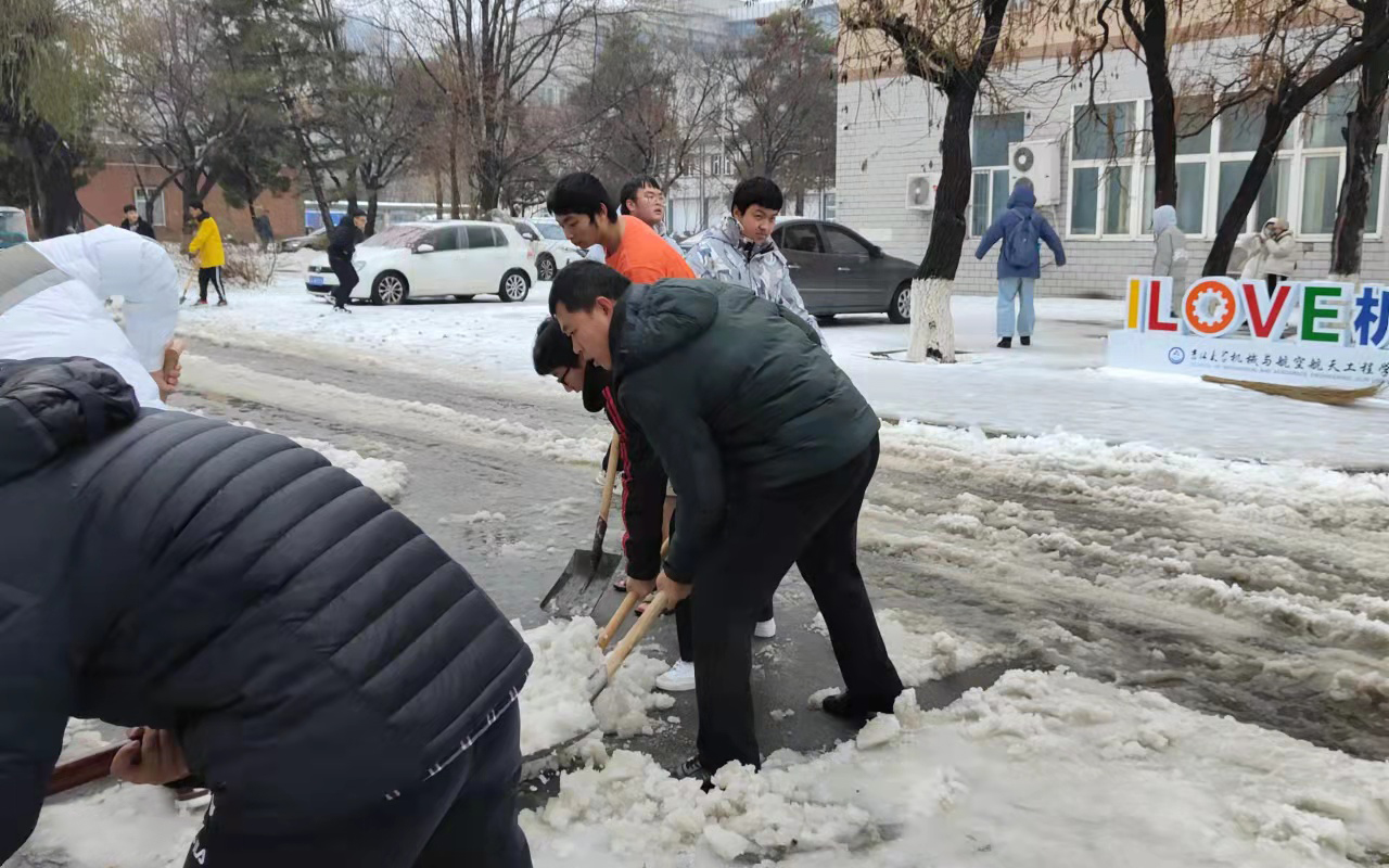 为进一步加强同学们的劳动教育,促进同学们形成正确的劳动观念,结合校区扫雪除冰专题会议的工作要求,切实做好扫雪除冰工作,减少校园积雪结冰对广大师生带来的出行不便,创造良好校园环境,结合相关工作要求,材料学院入党积极分子、2021级材料类专业本科生在本科生党支部书记、辅导员严冬老师的组织和带领下,于2021年11月8日对分担区内进行扫雪除冰工作。