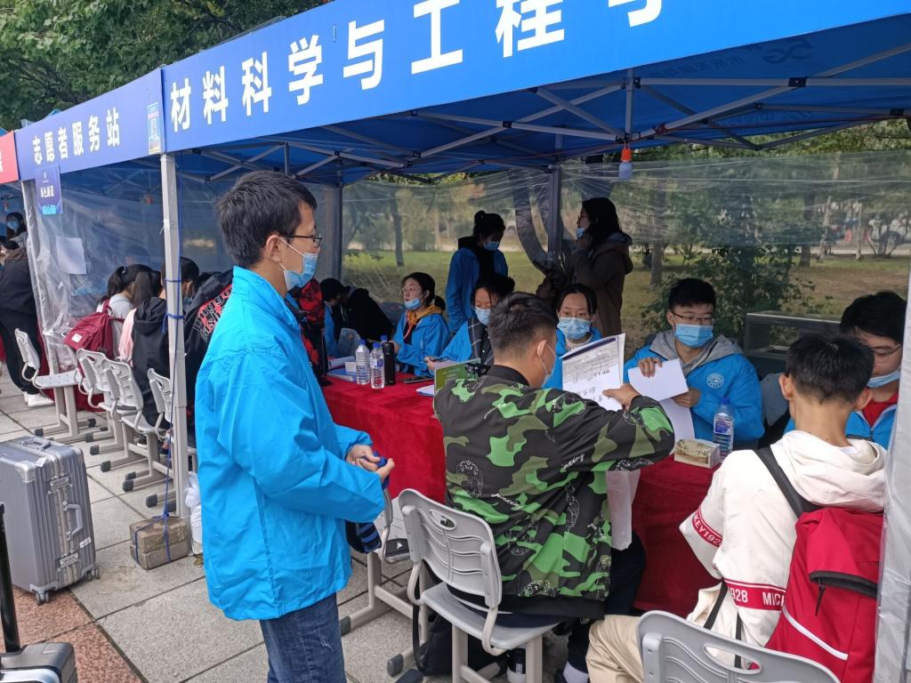 学生办公室主任兼材料物理辅导员辛颖、2020级材料类新生辅导员王晗参与并指导开展了此次迎新工作。