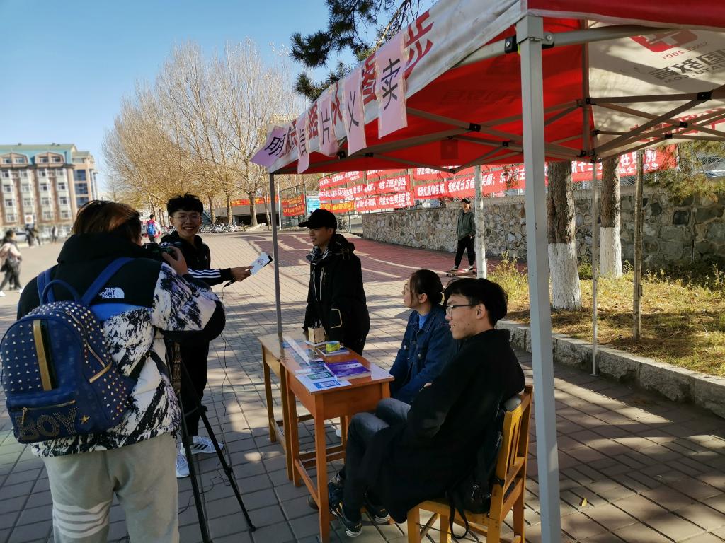南岭校区文化活动中心前组织了“重温光荣岁月”自制明信片爱心售卖活动,2018级部分学生干部和志愿者参加了本次活动。