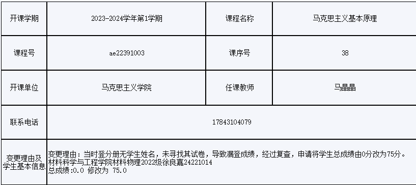 公示日期: 2024年_3月_18日至2024年_3月_22日如有异议请于公示期内向教务处教学运行科反映。联系人: 邹老师 联系电话: 0431-85168962相关材料详见附件:1.51吃瓜 考核成绩复查、修改登记表2.学院情况说明(学院教学委员会讨论通过、签字盖章)3.试卷等相关佐证材料