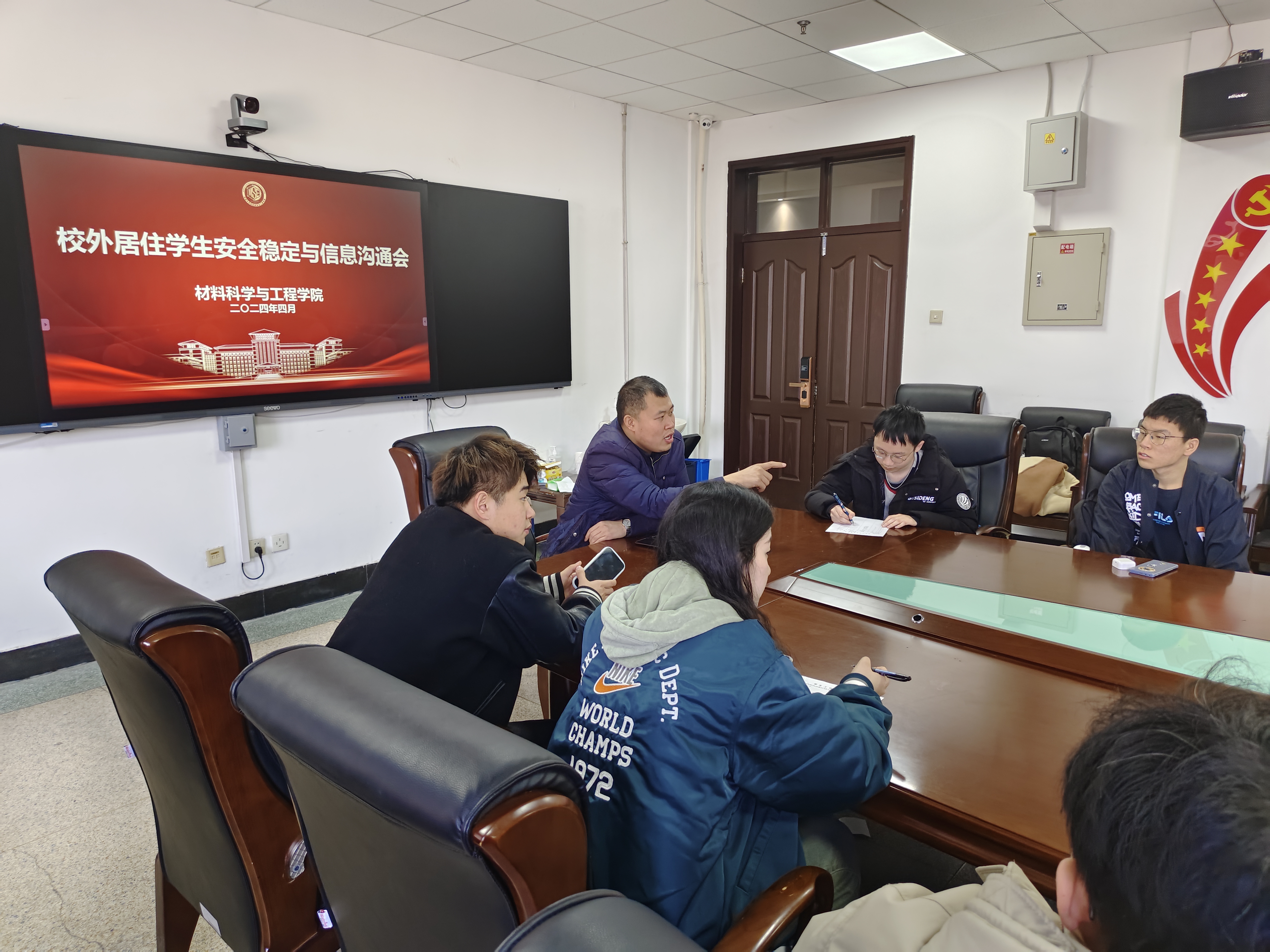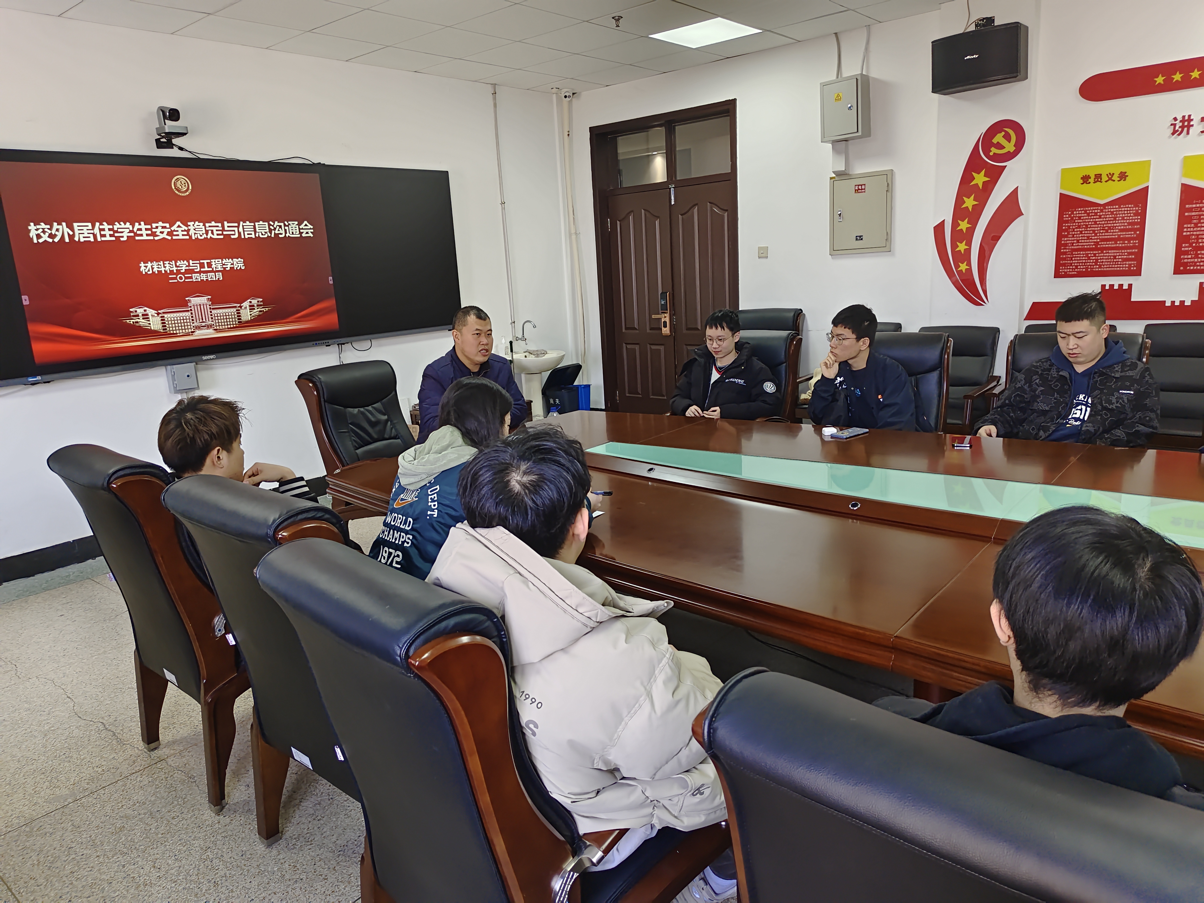于2024年4月1日中午在逸夫机械材料馆410召开了校外居住学生安全稳定与信息沟通会,2021级、2023级辅导员严冬主持本次会议,2021级、2023级所有校外居住同学参加此次会议。