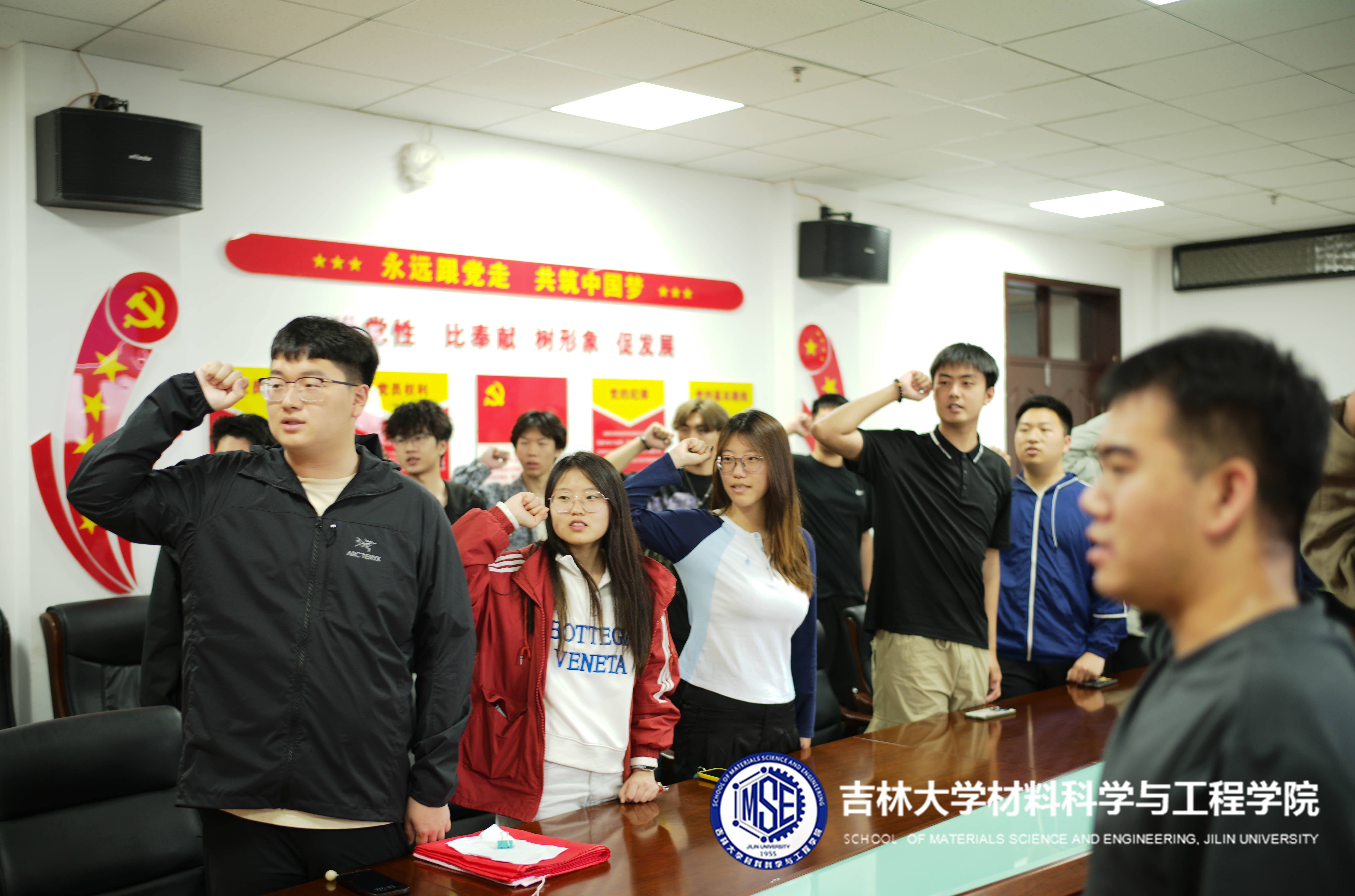 于逸夫机械材料馆410举行“五四”青年节重温入团誓词仪式。2024级辅导员唐运通老师、学院基层团委学生副书记、部门负责人和2024级“星火燎原 领航青春”新生入党积极分子参加活动。