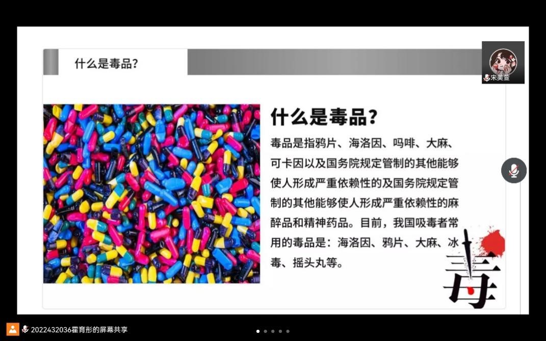 研究生禁毒教育工作,推动我校禁毒宣传教育工作向纵深发展,2022年11月7日,22级材料学研究生开展了“珍爱生命·远离毒品”宣传教育线上班会,引导同学们了解禁毒知识、认清毒品危害,自觉远离毒品,增强同学们防毒、拒毒的意识和能力,预防和减少学生涉毒违法犯罪,营造和谐校园。