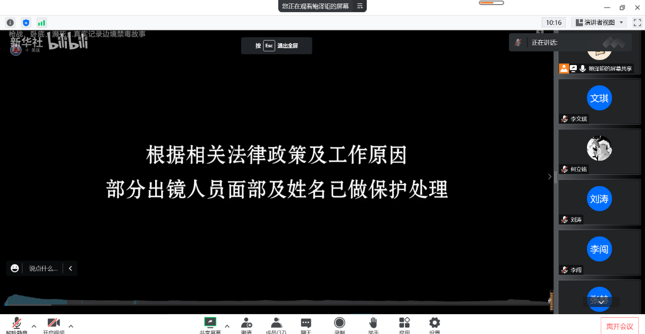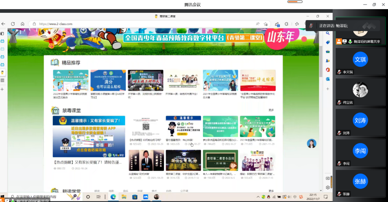会议由22级材料加工班班长鲍泽钜主讲。虽然由于疫情的原因,采取线上的方式来开展禁毒宣传教育工作。会上,首先简单介绍了禁毒相关的知识,鼓励同学们开展模拟禁毒法庭、禁毒情景剧排演、禁毒题材作品创作等活动,调动同学们的主动参与的积极性,增强禁毒主题班会的吸引力和教育效果,然后为大家介绍了全国青少年毒品预防教育数字化平台的各项功能,例如VR参观等趣味体验。