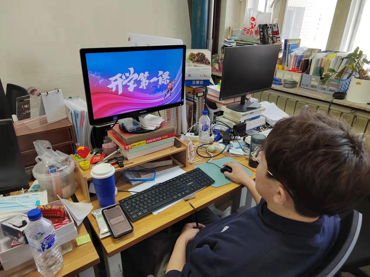 为深入学习贯彻习近平新时代中国特色社会主义思想,贯彻落实习近平总书记关于北京2022年冬奧会的重要讲话指示精神,以及我院积极响应省教育厅关于组织收看“奋斗有我,一起向未来”全省高校思政课“开学第一课”的通知,由于疫情的原因,学院研究生办公室主任刘徽老师、研究生思政秘书杨美晨老师组织本院全体研究生在2022年3月7日下午13: 30-14: 30线上收看由马光焱教授主讲的2021—2022 学年度第二学期“奋斗有我,一起向未来”全省高校思政课“开学第一课”。