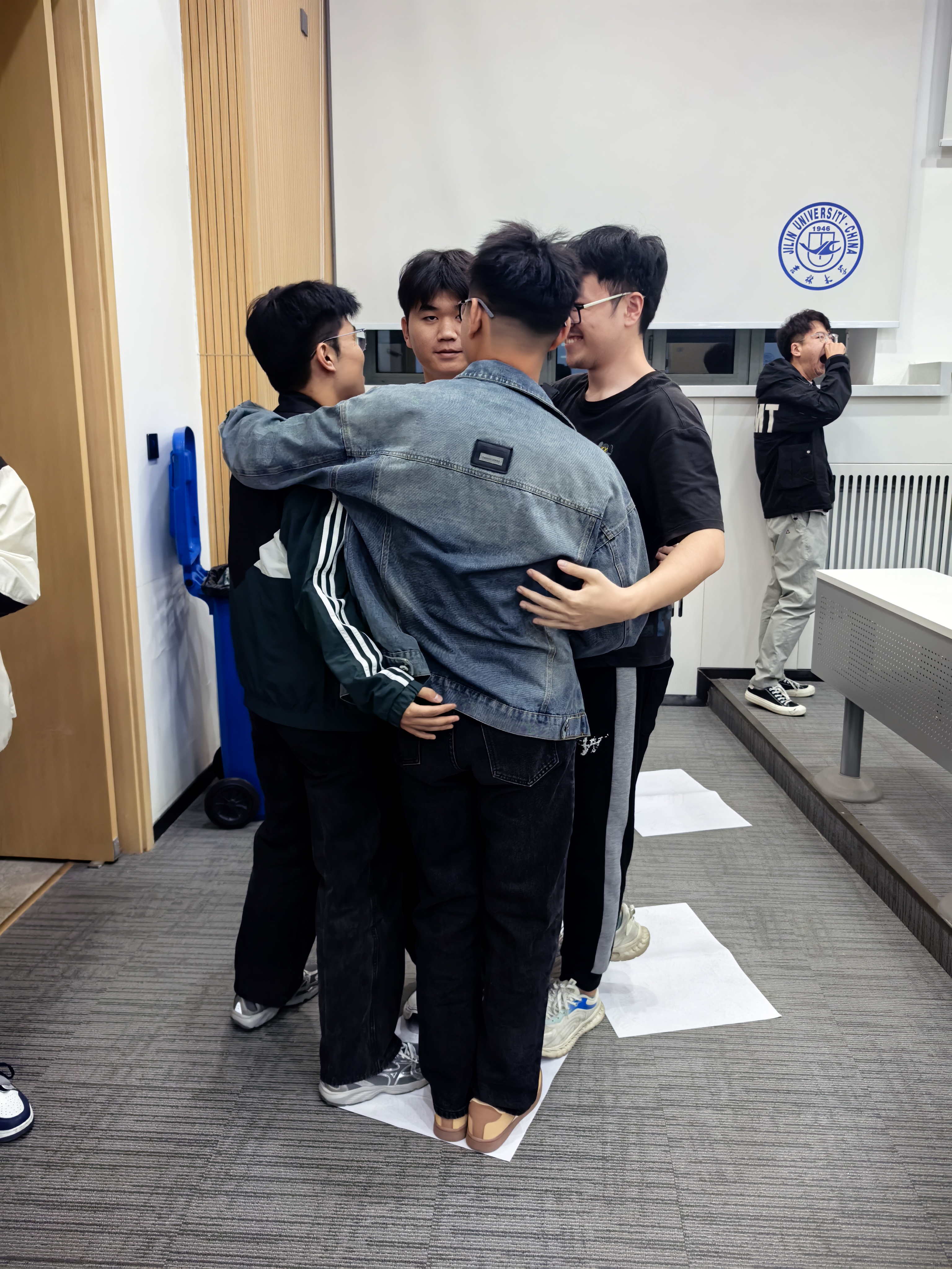 在“我知道”环节中,同学们通过轮流交流姓名含义、家乡风俗等话题,加深了对彼此的了解。随后的“人体字母”游戏更是将现场气氛推向高潮,各小组充分发挥想象力与团队协作能力,用身体摆出英文单词,展现了材料学子创意无限、活力满满的精神风貌。“同舟共济”环节中,同学们站在不断“缩小”的A2、A3纸上,共同思考如何通过协作完成挑战。大家互相扶持、彼此信任,在一次次尝试中体会到团队合作的力量。“众志成城”叠纸塔游戏中,同学们集思广益、分工协作,用纸牌搭建起象征团结与智慧的“高塔”,进一步增强了小组凝聚力。