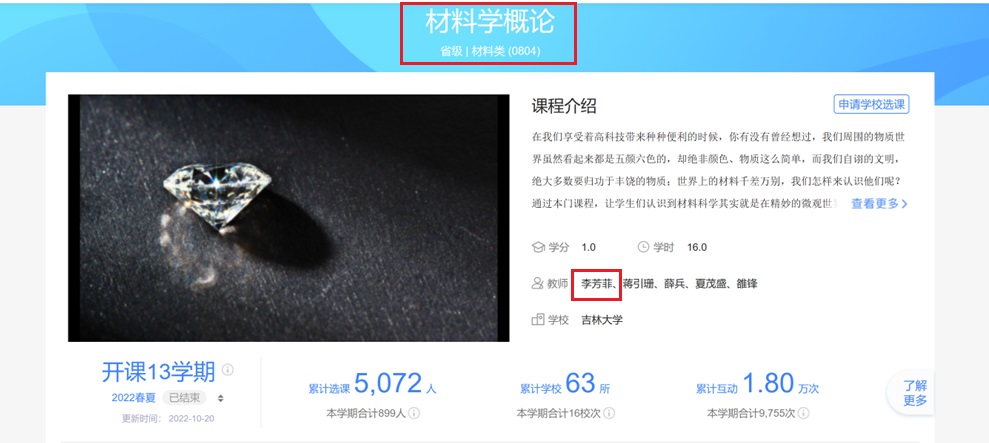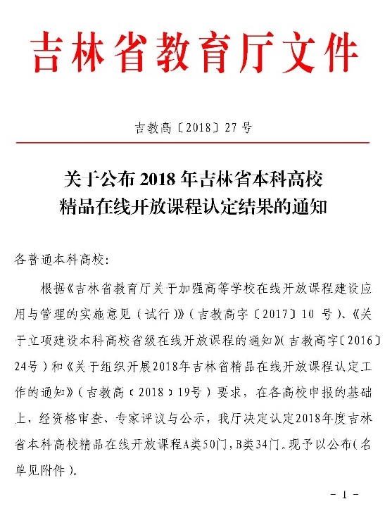 4. 2018年吉林省本科高校精品在线开放课程:《材料学概论》,吉林省教育厅,2018.09.25