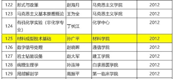 1-2. 吉林省精品课程(2门):《材料科学基础》(2011年)、《材料成型技术基础》(2012年),吉林省教育厅,2012.03.01